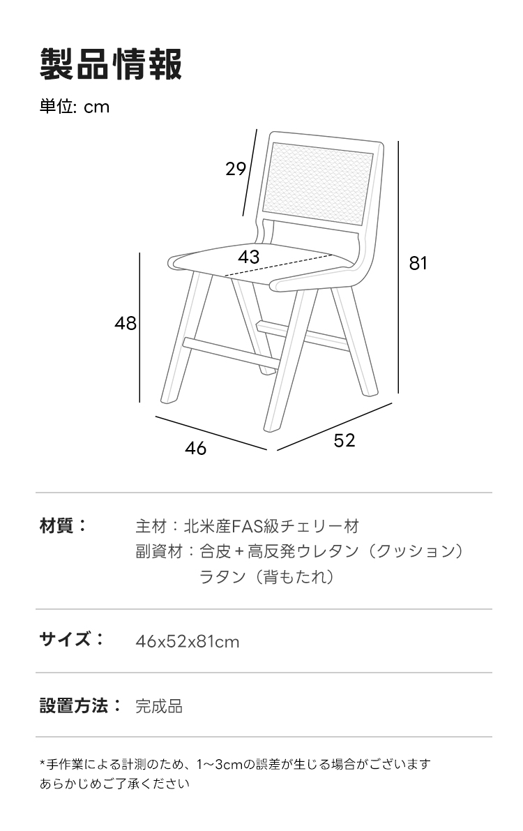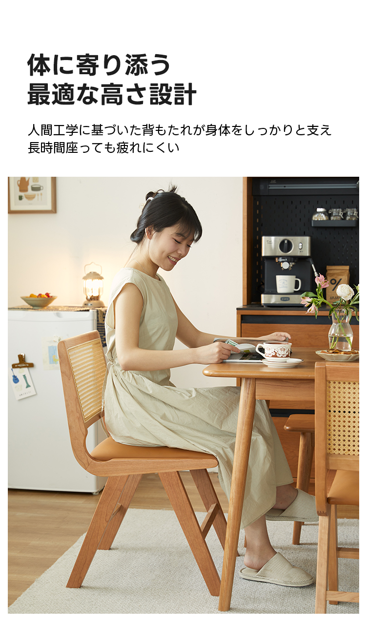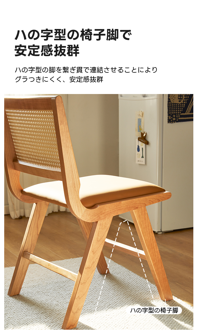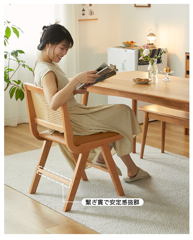 - 【品質とデザインの融合】北米産FAS級チェリー材を使用し、八の字型の椅子脚が安定感を高めます。伝統的なほぞ継ぎ構造で耐久性も抜群です。