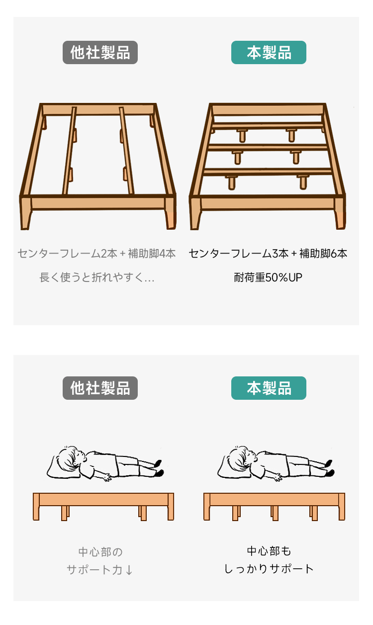 - 【静音設計で快適な睡眠環境】すのこ板の構造が縦向きに配置され、揺れに強く静音性に優れています。静音パッドが接触部分に設置されており、摩擦を防ぎます。