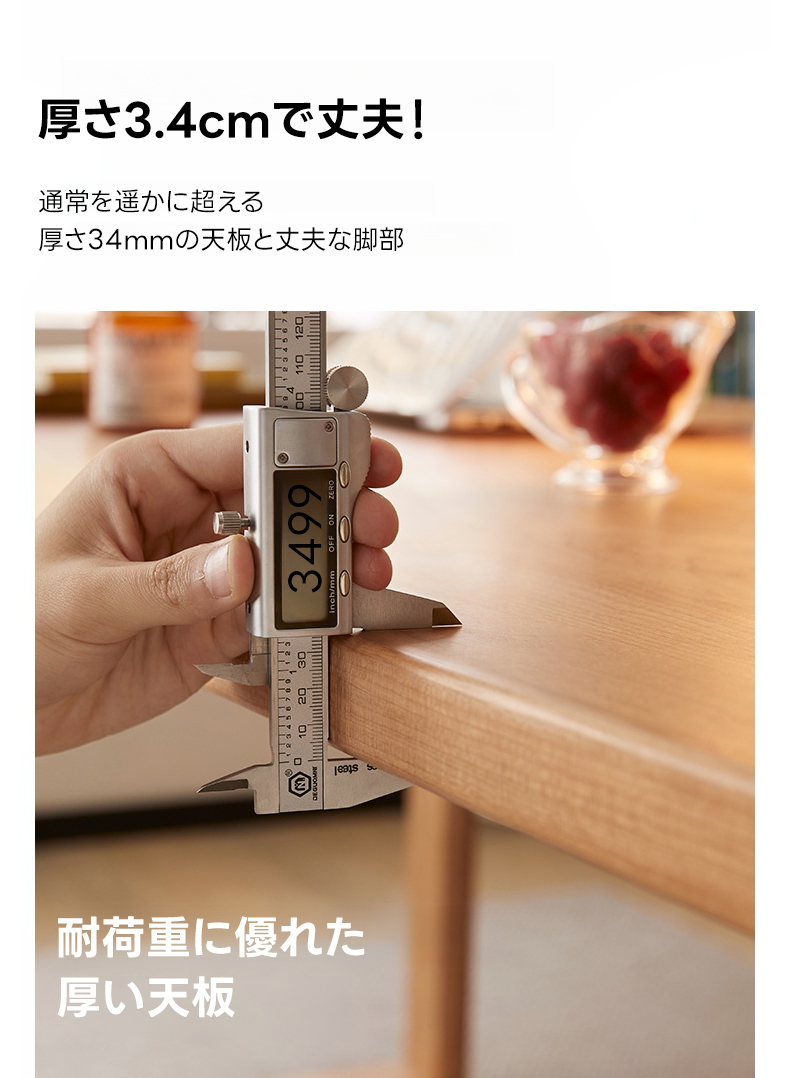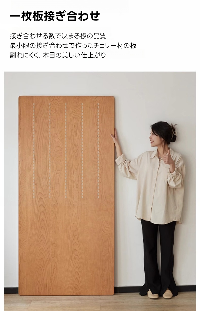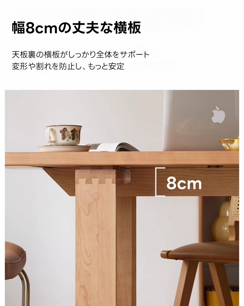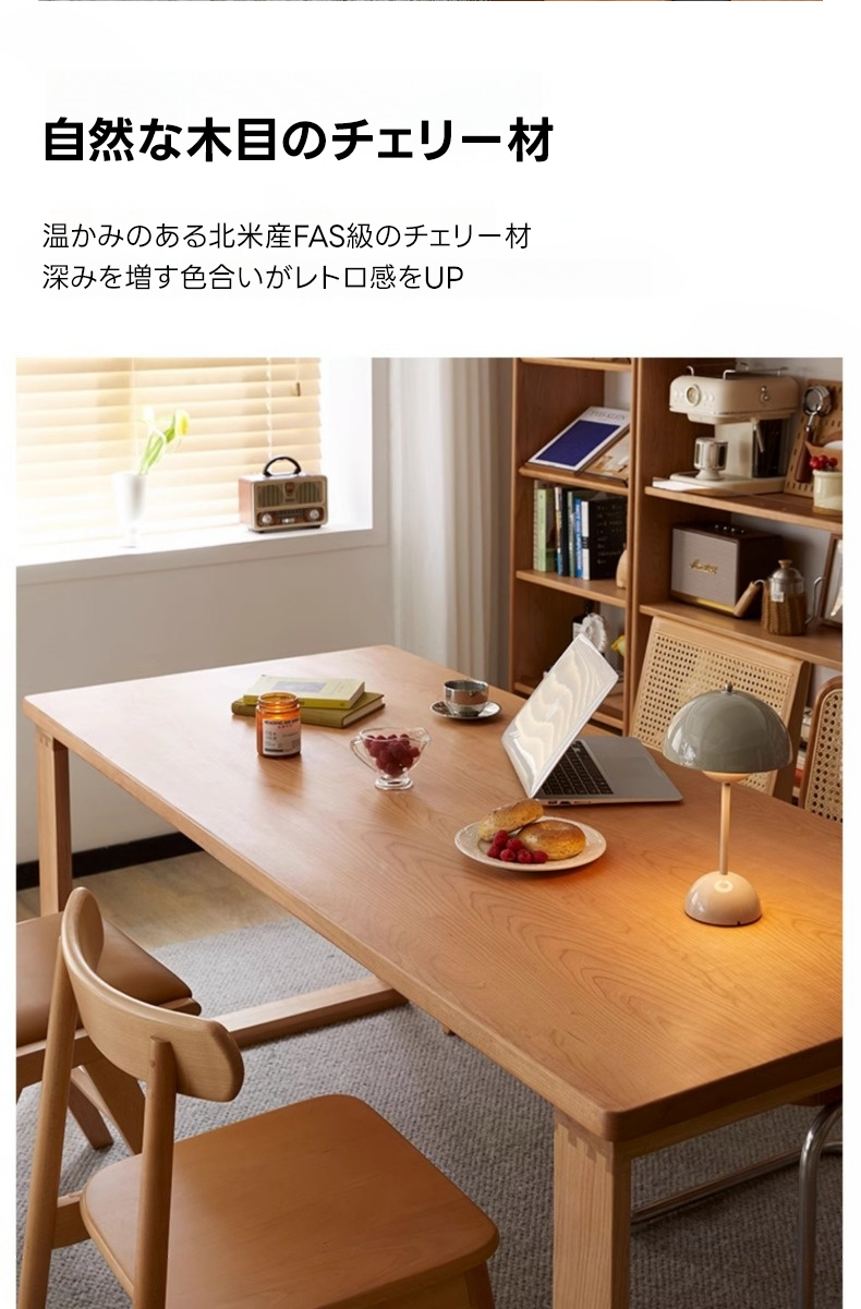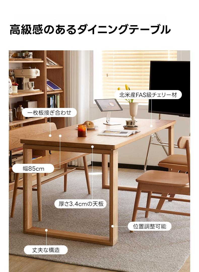 - 【高級感のある素材と頑丈な構造】FASグレードのチェリー材を使用し、耐久性と美しさを兼ね備えています。厚さ3.4cmの天板と10cmの幅広な脚部が、優れた安定感を提供します。