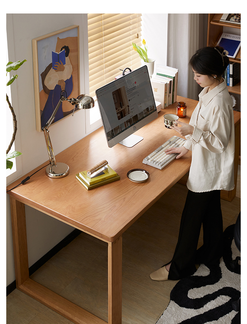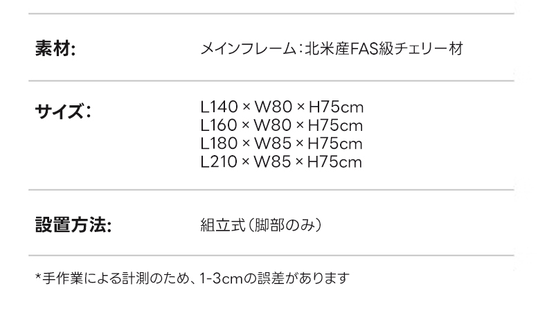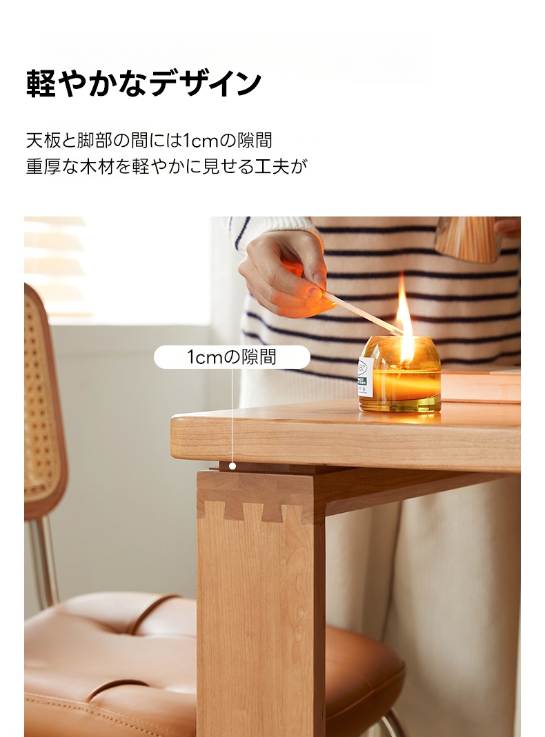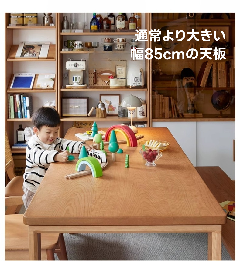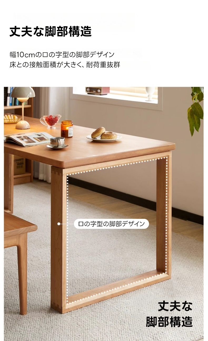 - 【高級感のある素材と頑丈な構造】FASグレードのチェリー材を使用し、耐久性と美しさを兼ね備えています。厚さ3.4cmの天板と10cmの幅広な脚部が、優れた安定感を提供します。