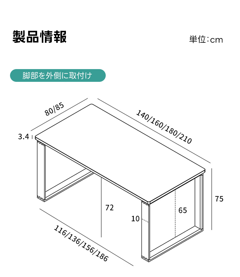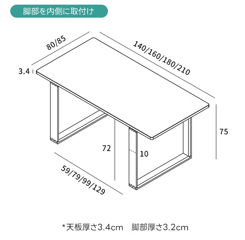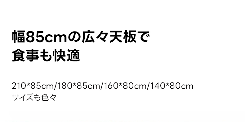 - 【広々とした天板で快適な作業スペース】幅85cmの広い天板は、食事や作業に最適です。210cmの長さで、家族や友人との集まりにも対応可能です。