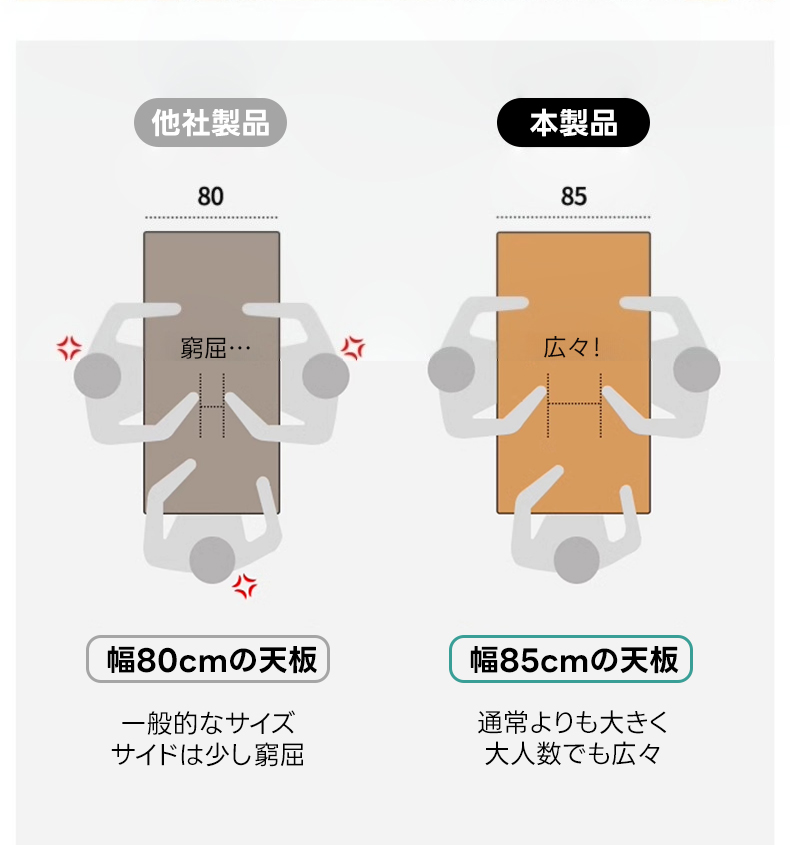 - 【簡単な組立とカスタマイズ可能な設置】脚部のみの組立が必要で、簡単に設置できます。脚部の位置は調整可能で、使用人数や場所に応じてカスタマイズが可能です。