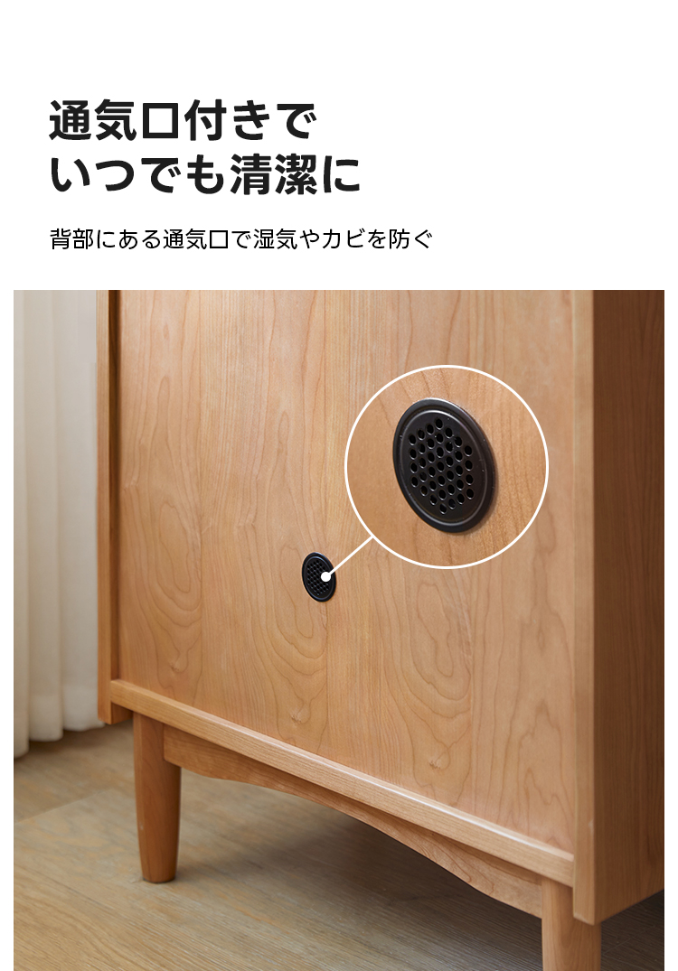 - 【高品質な素材とデザイン】:北米産のFASグレードチェリー材を使用し、耐久性と美しい仕上がりを実現。背面の通気口により、湿気やカビを防ぎ、長期間安心してお使いいただけます。