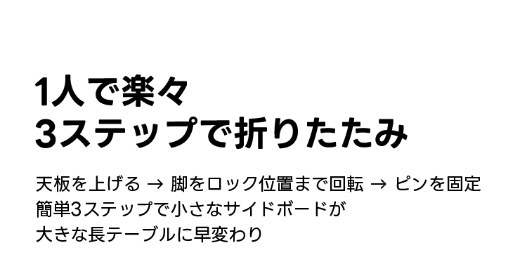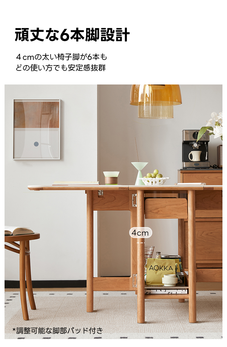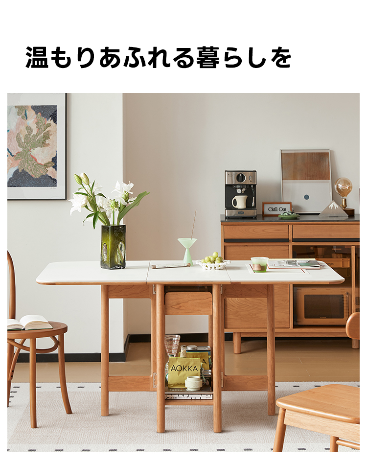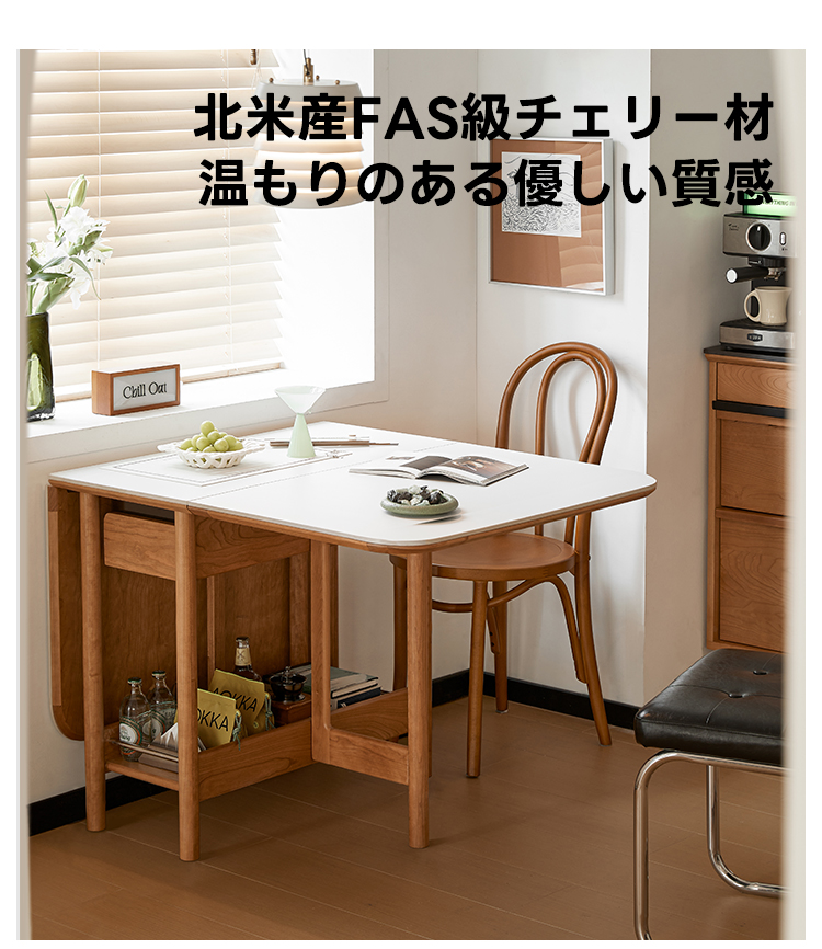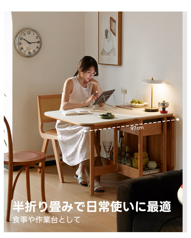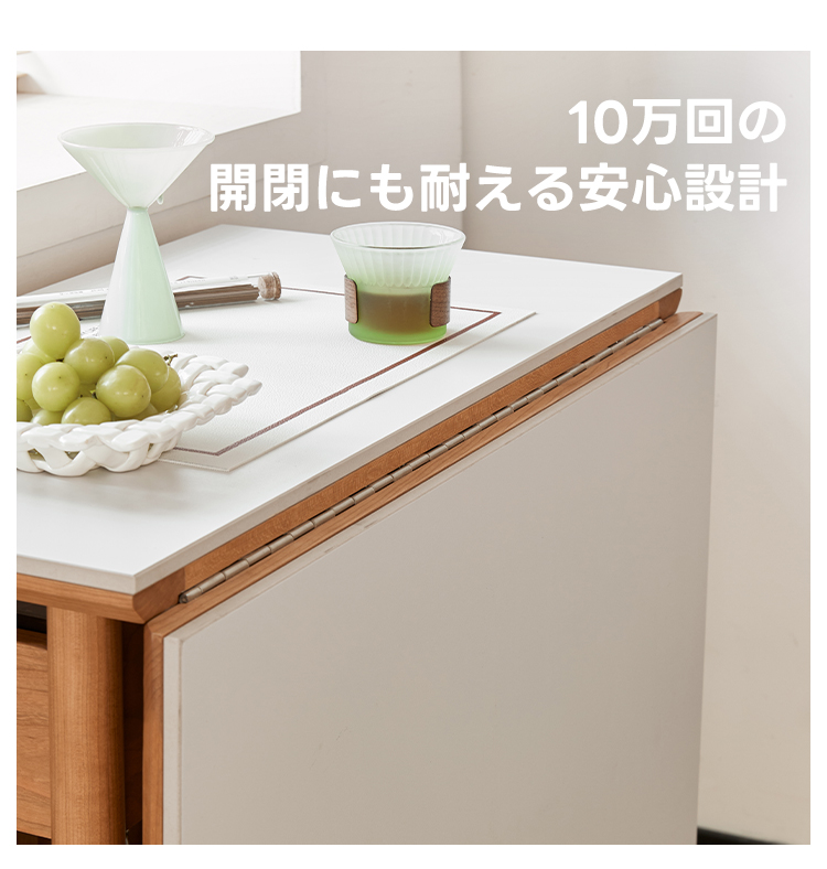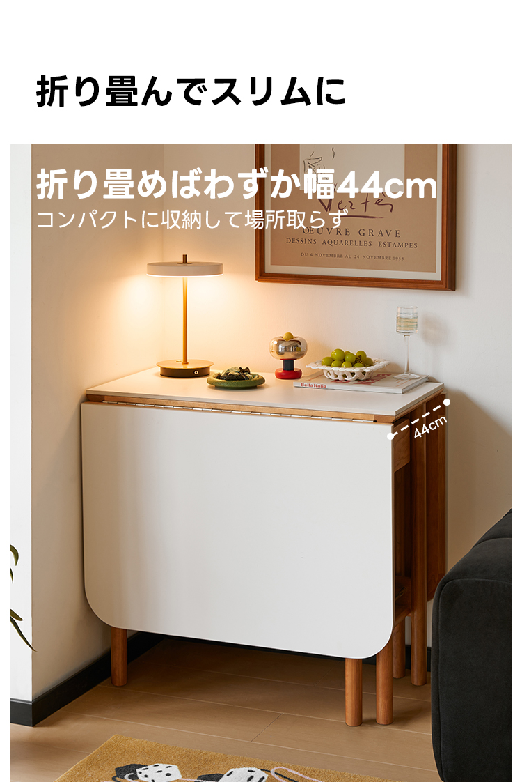 - 【省スペース設計で多様なシーンに対応】折り畳み可能なデザインにより、幅44cmまでコンパクトに収納可能。スペースを取らず、一人暮らしやカップル、ファミリーのダイニングに最適です。3ステップで簡単に展開でき、日常使いに便利です。