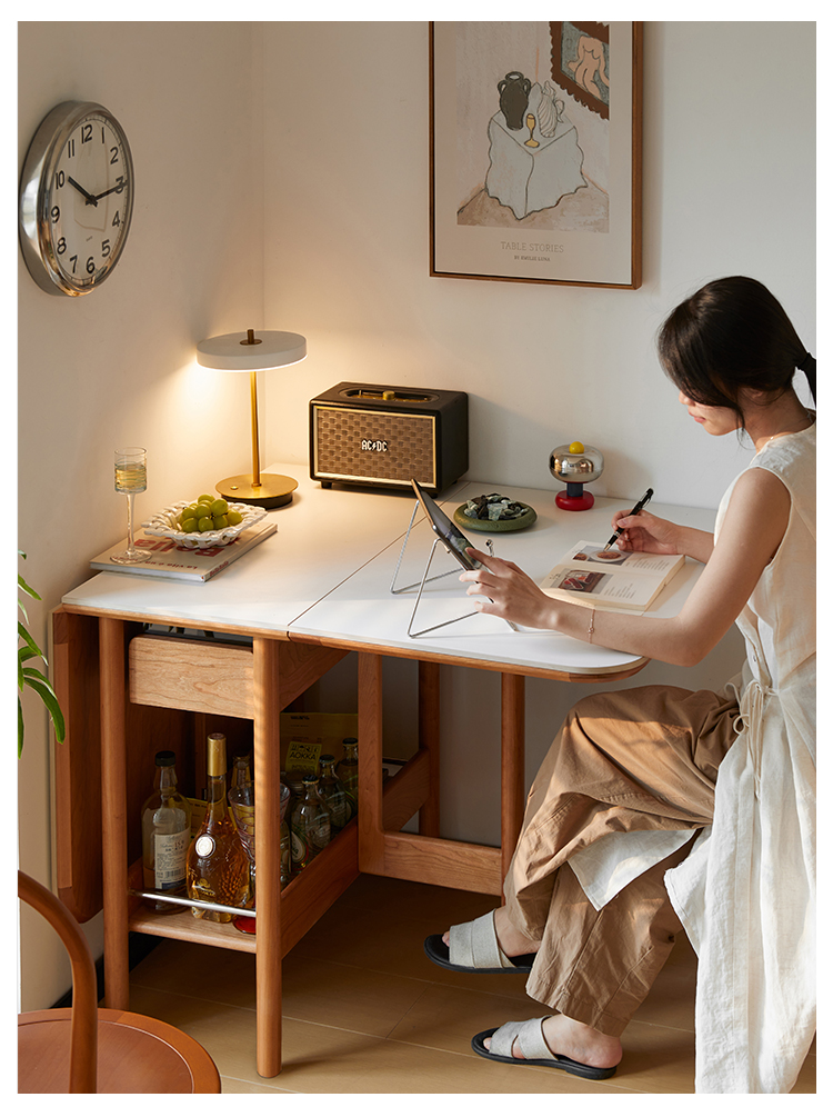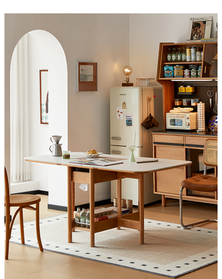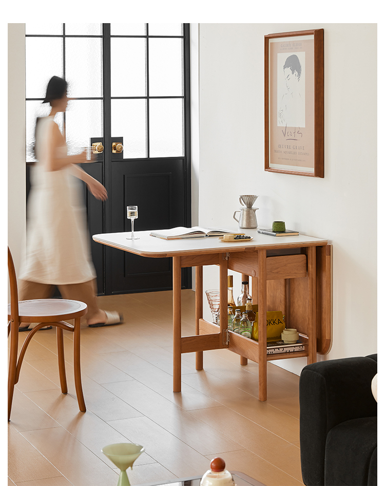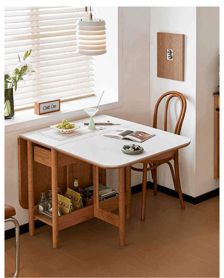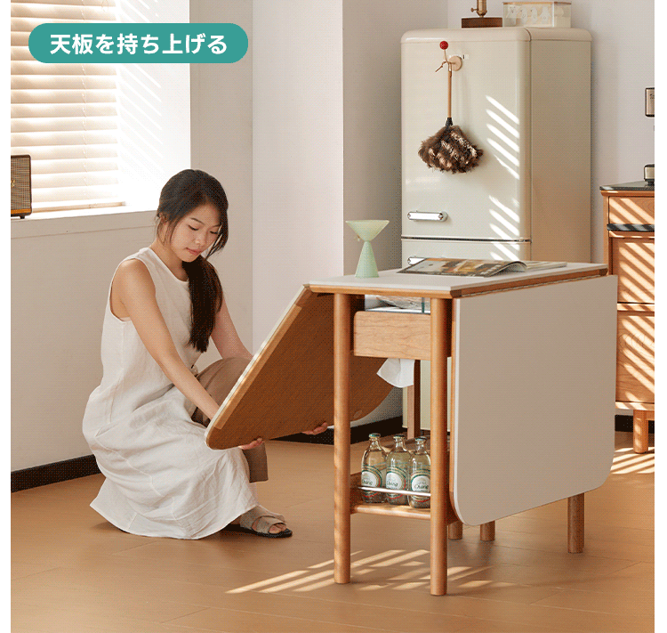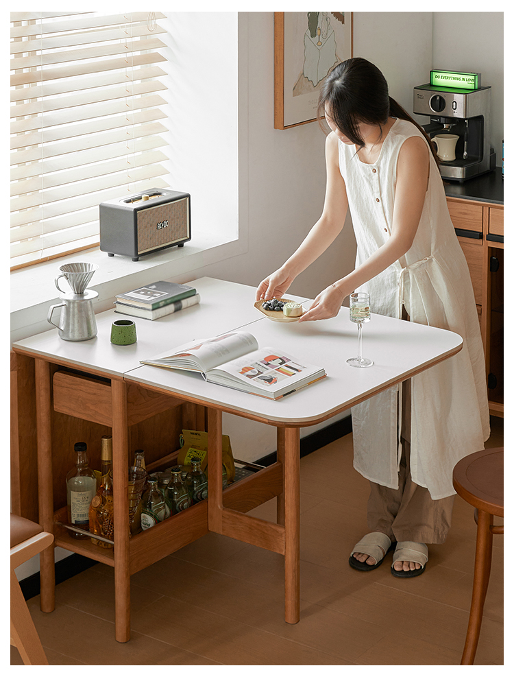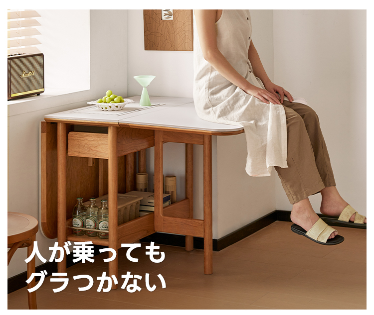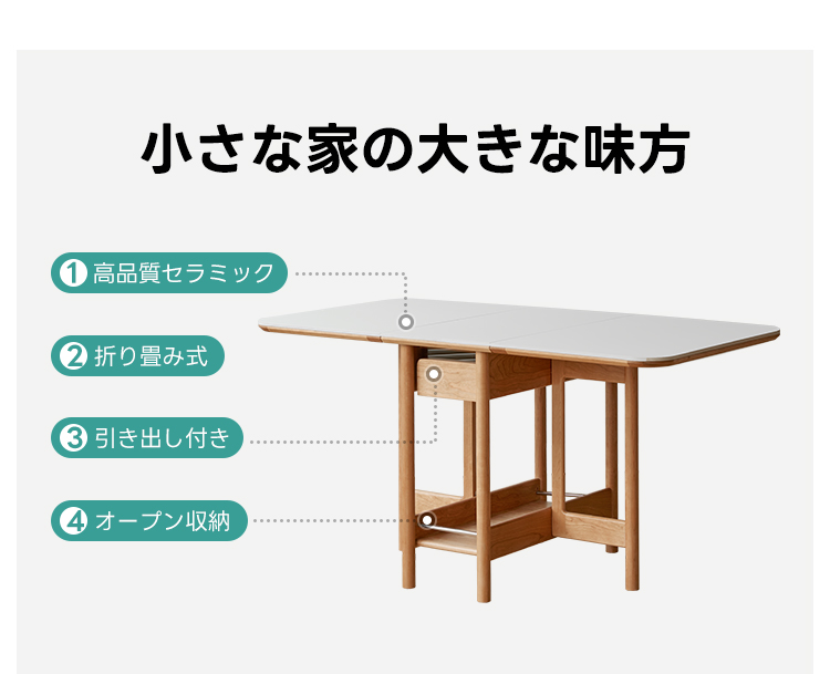 - 【省スペース設計で多様なシーンに対応】折り畳み可能なデザインにより、幅44cmまでコンパクトに収納可能。スペースを取らず、一人暮らしやカップル、ファミリーのダイニングに最適です。3ステップで簡単に展開でき、日常使いに便利です。