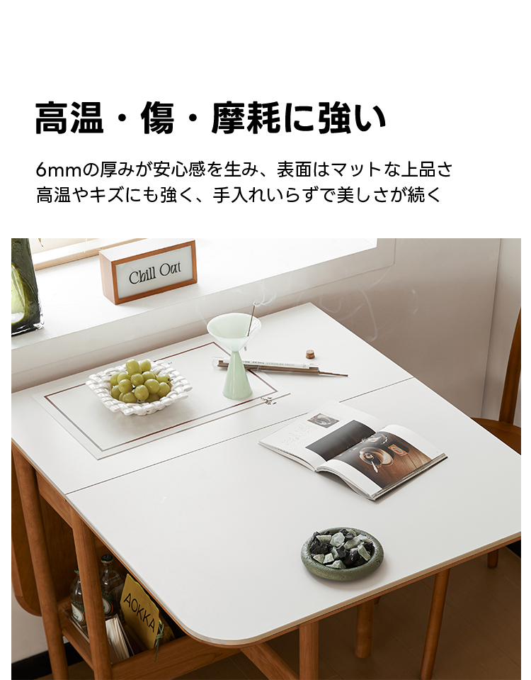 - 【優れた耐久性と機能性】このダイニングテーブルは、ホワイトセラミック天板を採用し、耐熱性と耐傷性に優れています。厚さ6mmのセラミックは、日常の使用においても安心の耐久性を提供します。食品グレードの安全性も備えており、直接食べ物を置いても問題ありません。