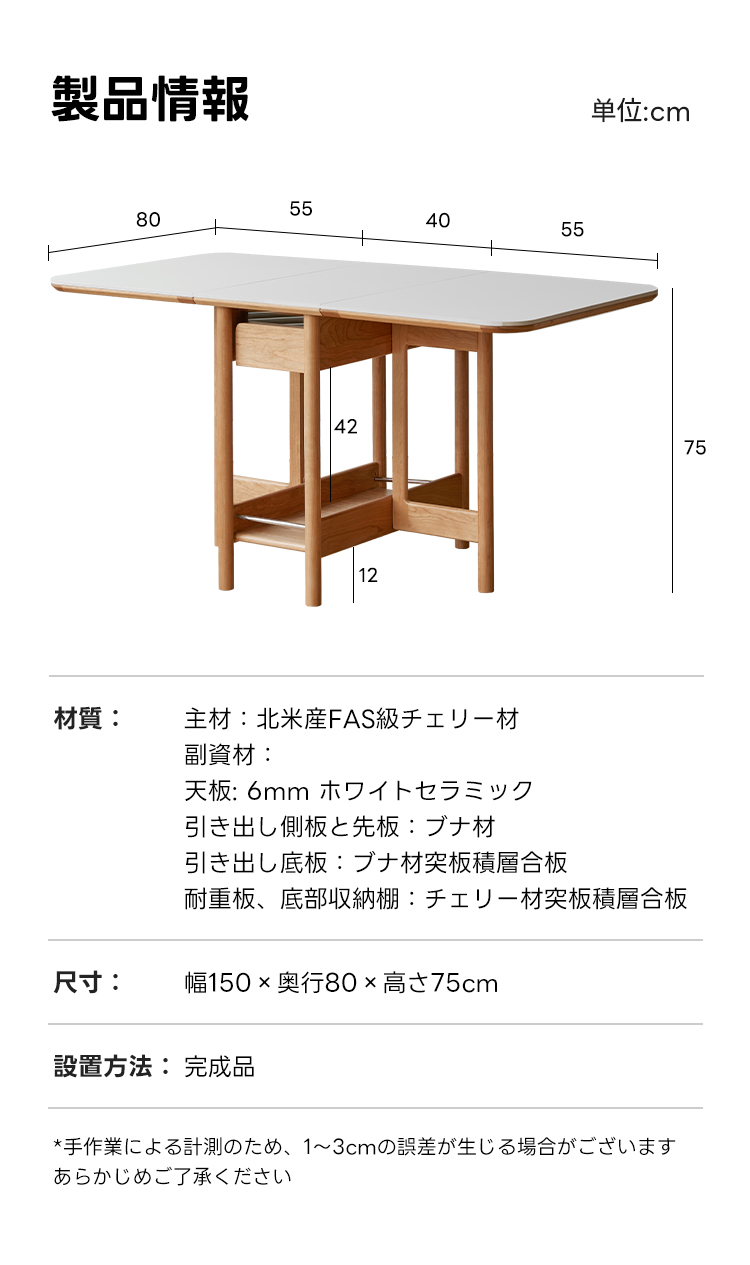 - 【高品質な素材とデザイン】北米産FAS級チェリー材を使用し、ナチュラルな温もりを感じさせるデザインが特徴です。チェリー材の優しい質感とセラミックの清潔感が、どんなインテリアにもマッチします。完成品としてお届けするため、組み立ての手間もありません。