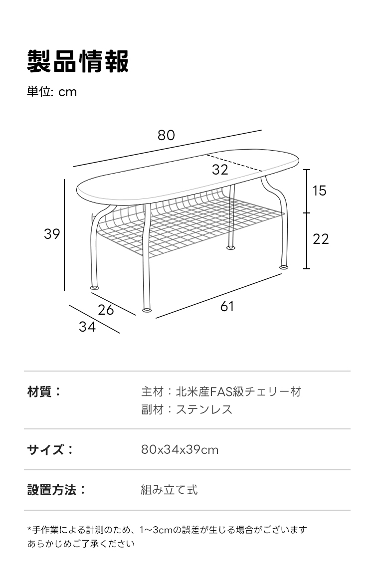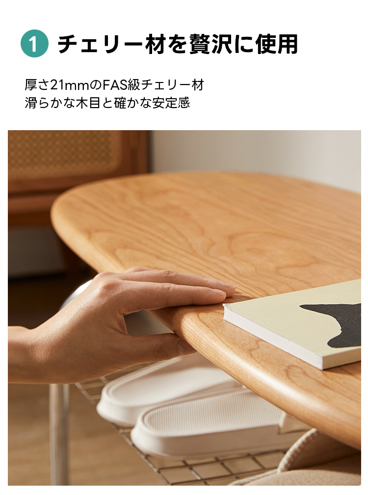 - 【高品質素材とデザイン】北米産FAS級チェリー材を使用し、厚さ21mmの贅沢な木材が自然な風合いを演出。ステンレス製の脚部は、美しさと耐久性を兼ね備えています。