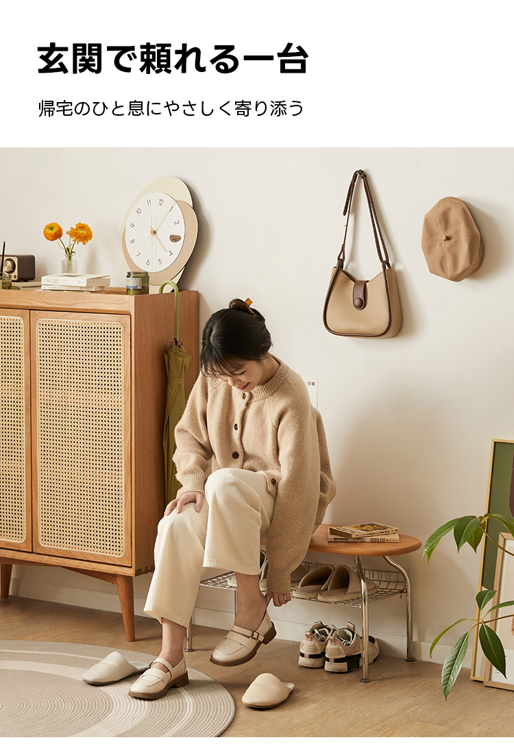 - 【適用シーンと利便性】玄関やリビングに最適なデザインで、一人暮らしやカップル、ファミリーにおすすめです。ナチュラルなライトブラウンの色合いが、どんなインテリアにもマッチします。