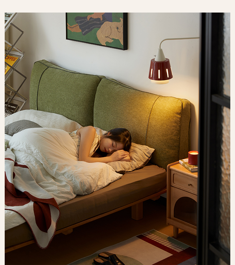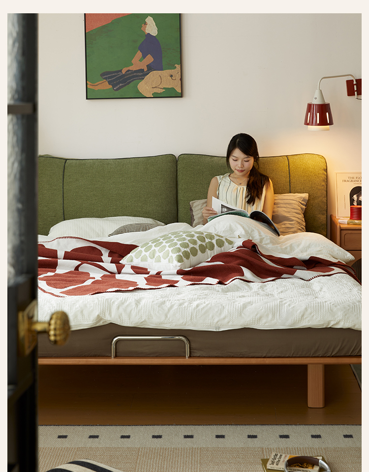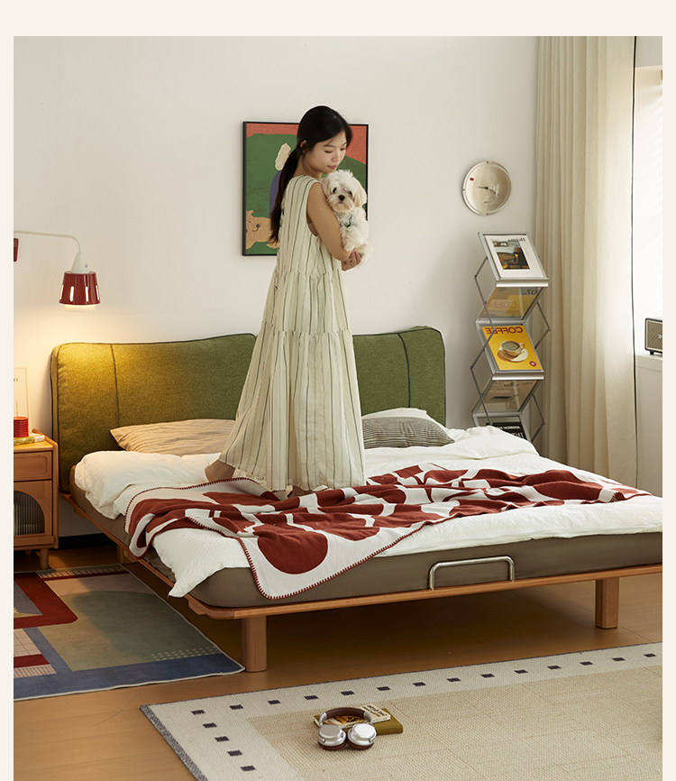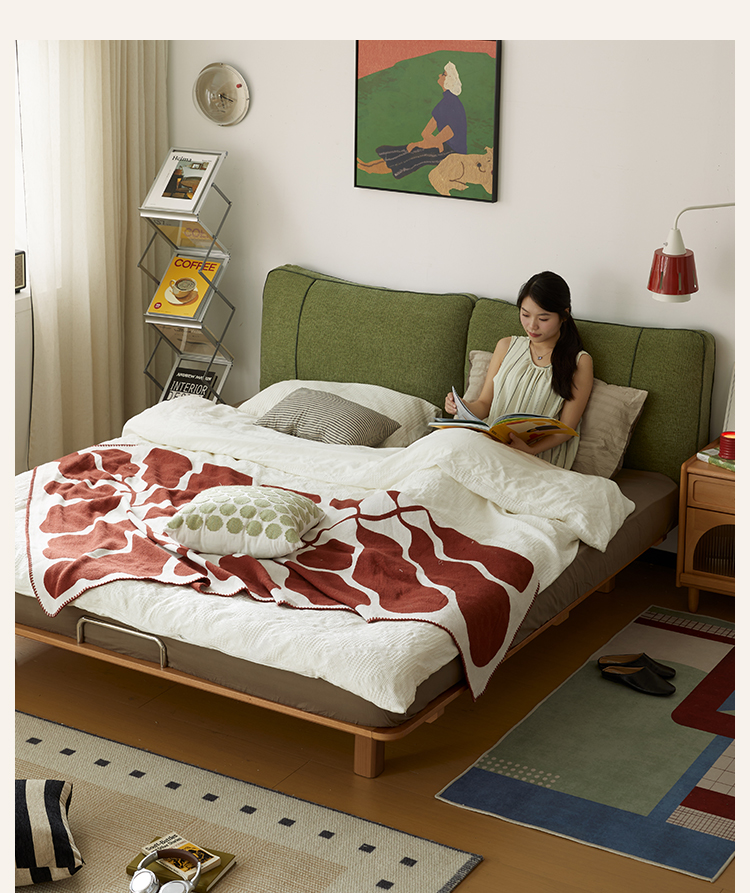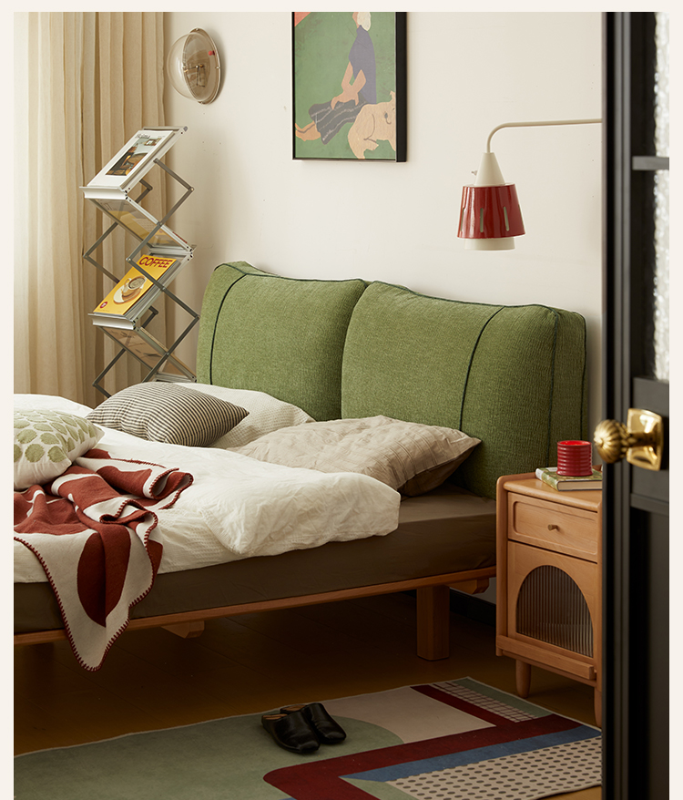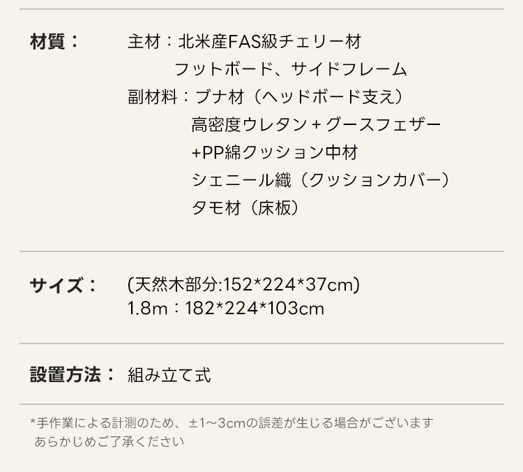 - 【高品質な素材とデザイン】このベッドは、耐久性のあるチェリー材を使用し、3本のフレームと5本の脚部で重さを均等に分散。ヘッドボードには取り外し可能で洗えるクッションが付き、シェニール織のカバーで快適な肌触りを実現しています。