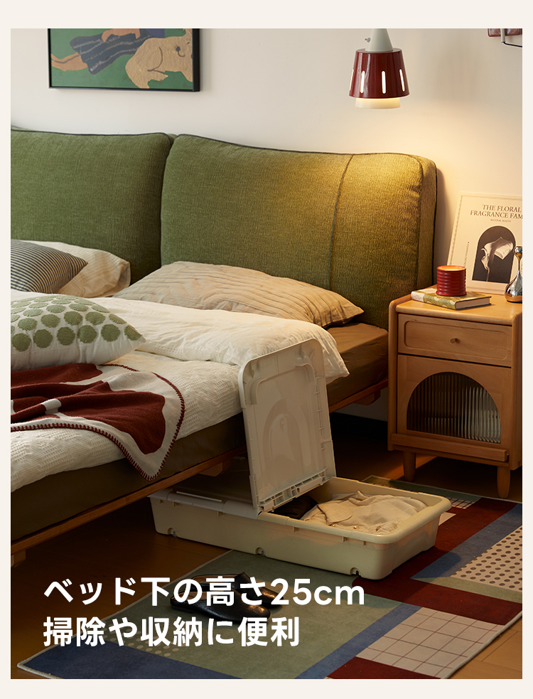 - 【快適な使用体験】ベッド下の高さは25cmあり、掃除や収納に便利です。マットレスのズレを防止するストッパーも付いており、快適な寝心地を提供します。細部にまでこだわったデザインが、心地よい睡眠をサポートします。