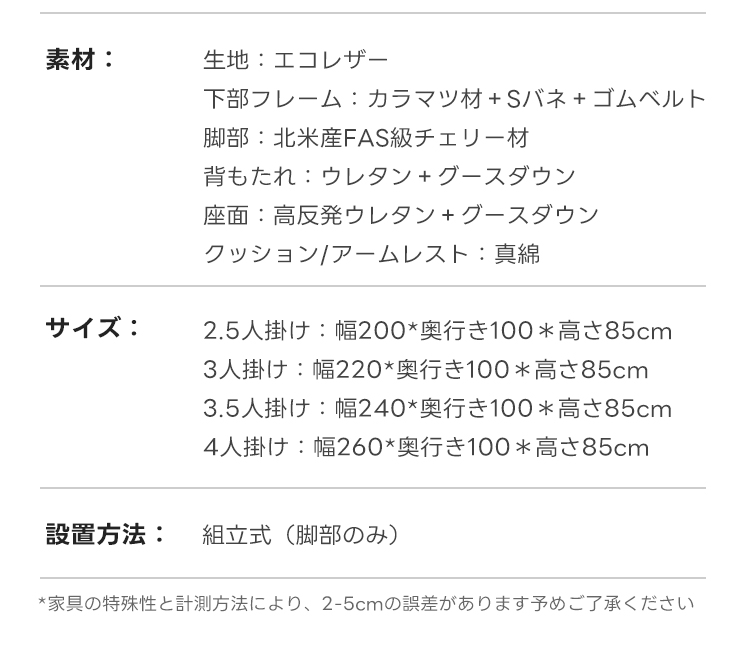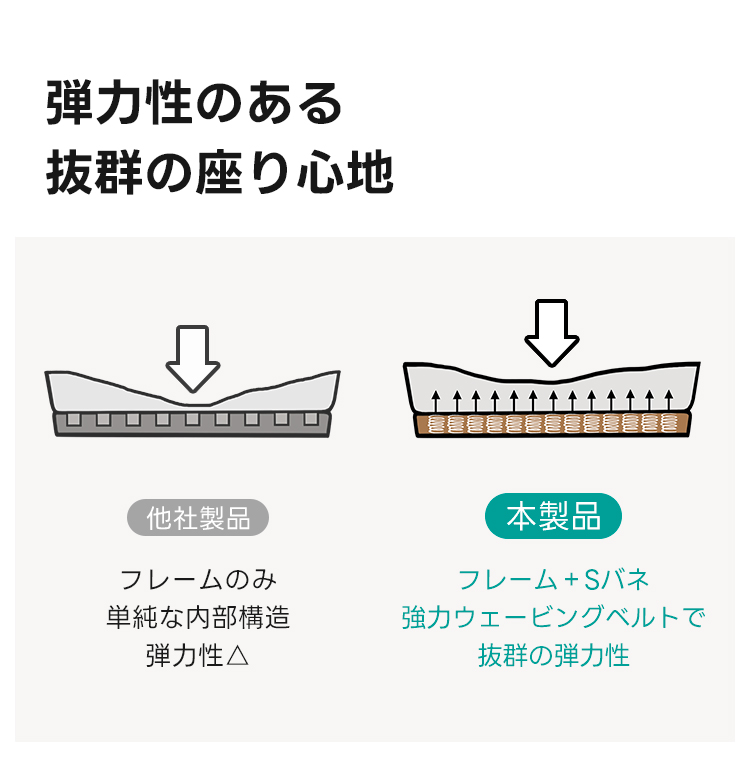 - 【高品質な素材とデザイン】:エコレザーを使用し、防水・防汚・通気性に優れています。下部フレームはカラマツ材とSバネ、ゴムベルトを使用し、耐久性と弾力性を確保しています。