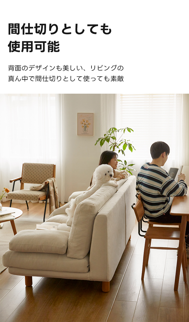 - 【多様な利用シーンに最適】:リビングでのくつろぎタイムや友人や家族との団らんに最適なこのソファは、一人暮らしからファミリーまで幅広く対応します。美しい背面デザインで間仕切りとしても使用可能です。