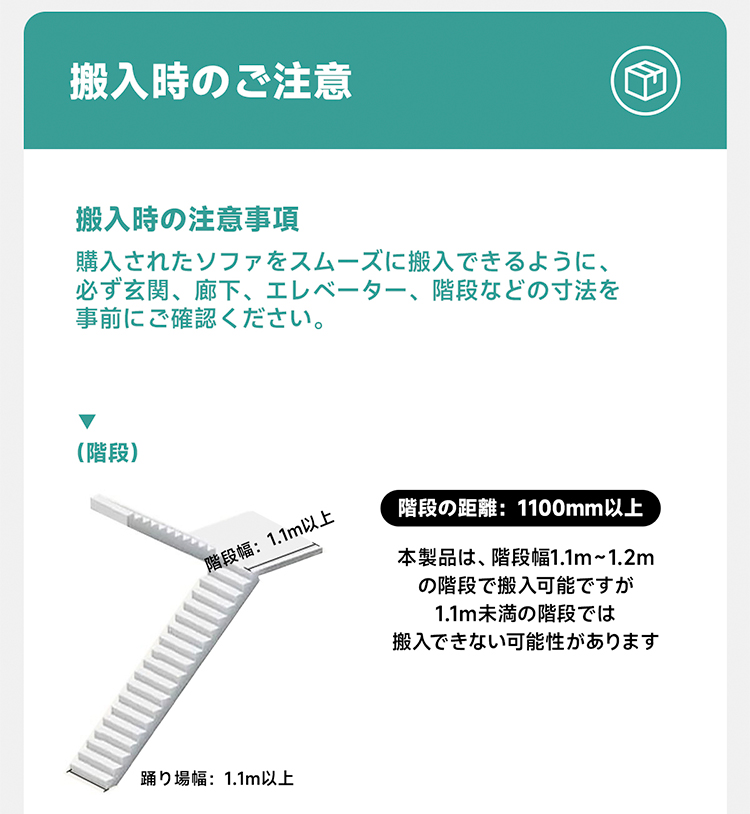 ※搬入不可等の理由による注文キャンセルは、ご返送にかかる費用をお客様にご請求いたします。ご注文前に大型家具の搬入方法をご確認ください。