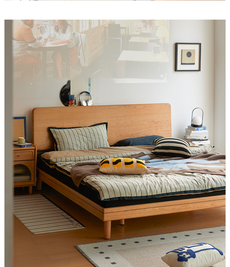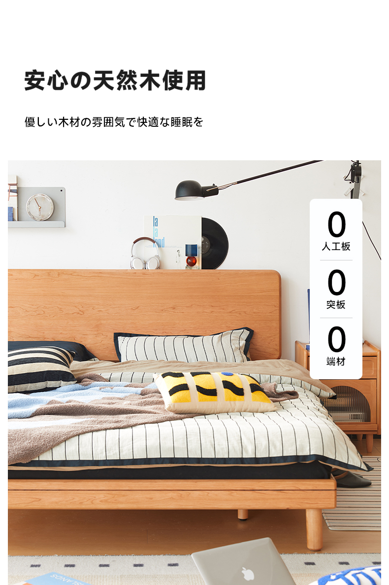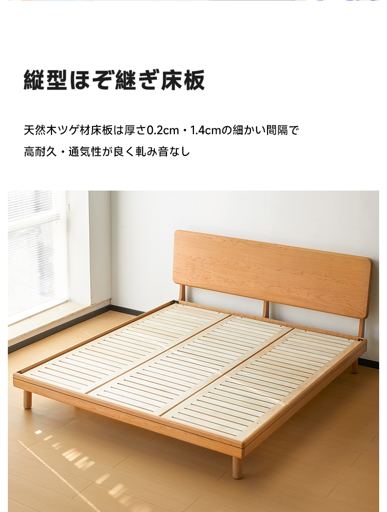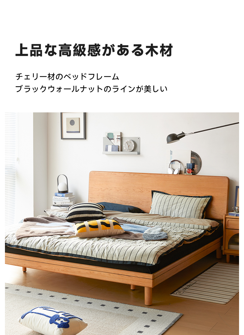 - 【高品質な素材とデザイン】チェリー材 木製ロータイプベッドは、北米産FAS級のチェリー材を使用しており、耐久性と美しさを兼ね備えています。ナチュラルなライトブラウンの色合いが、どんな寝室にも自然に溶け込みます。
