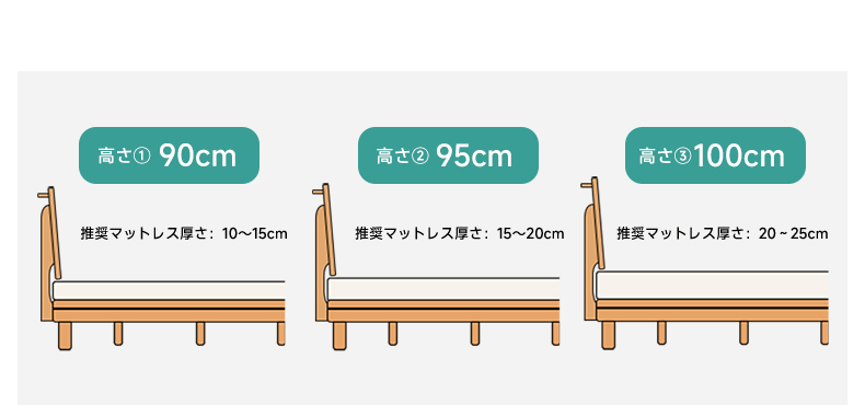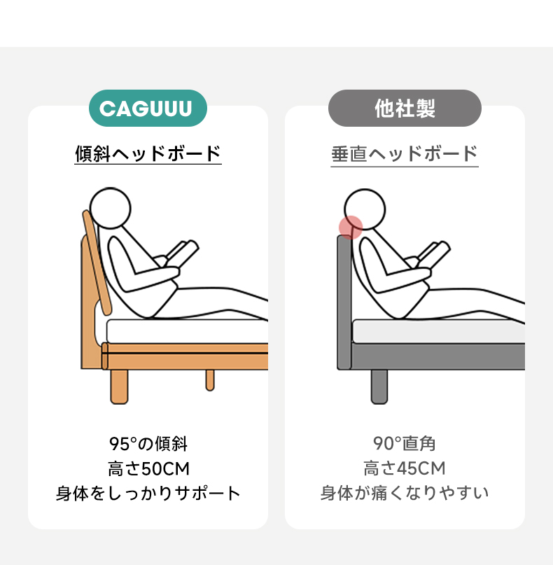 - 【快適な使用感】快適なヘッドボードは高さ50cm、95度の傾斜があり、リラックスした姿勢をサポートします。背もたれは3段階で高さ調整可能で、マットレスの厚みに合わせて調整できます。