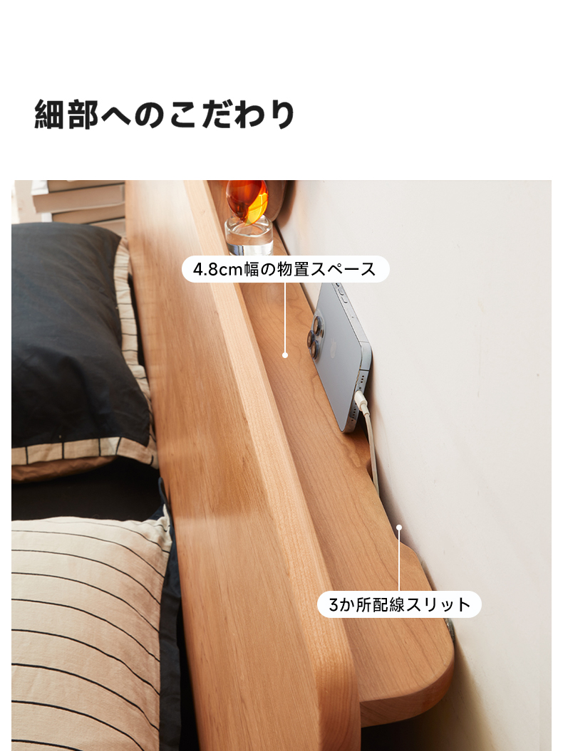 チェリー材 木製ロータイプベッド