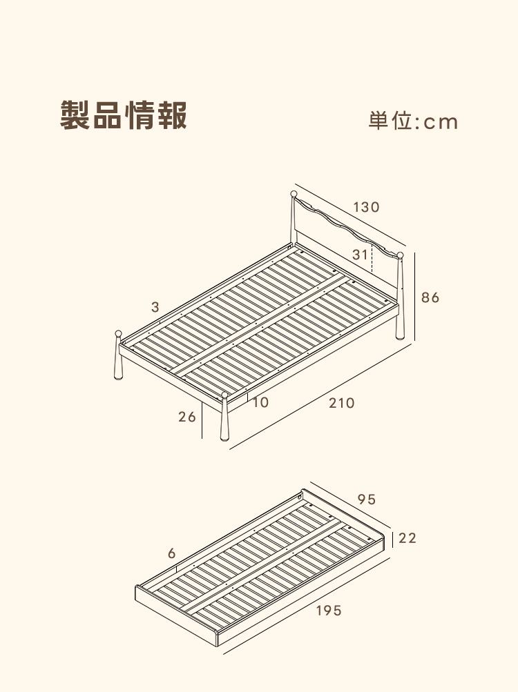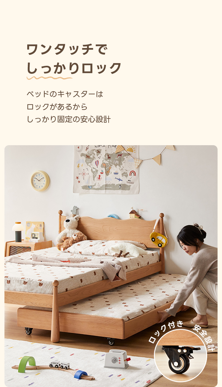 - 【安心の使用体験】ベッドのキャスターにはロック機能があり、しっかりと固定されるため、安心して使用できます。安定感があり、長く安心してお使いいただけます。
