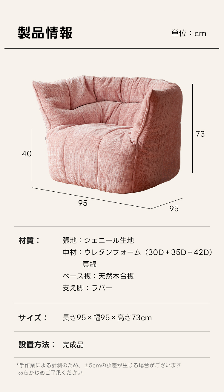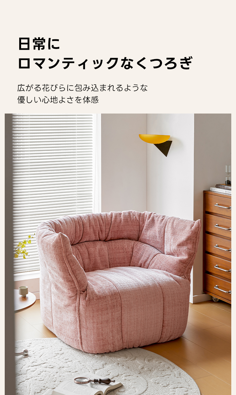 - 【優雅なデザインと快適な座り心地】フラワーデザインくつろぎシングルソファは、花びらのように広がるデザインで視覚的な魅力を提供し、どんな姿勢でも体を優しく包み込む形状でリラックスした時間をお届けします。