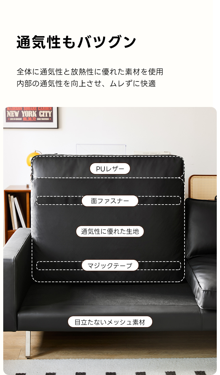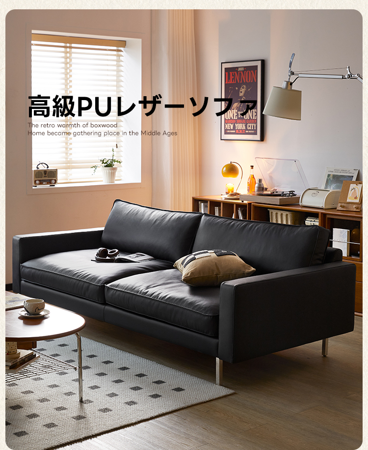 - 【快適な座り心地と高級感】:高級PUレザーを使用したこのソファは、スタイリッシュでモダンなデザインが特徴です。高反発ウレタンとグースダウンを組み合わせたクッションにより、長時間座っても快適な座り心地を提供します。ブラックのPUレザーが高級感を演出し、どんなインテリアにもマッチします。