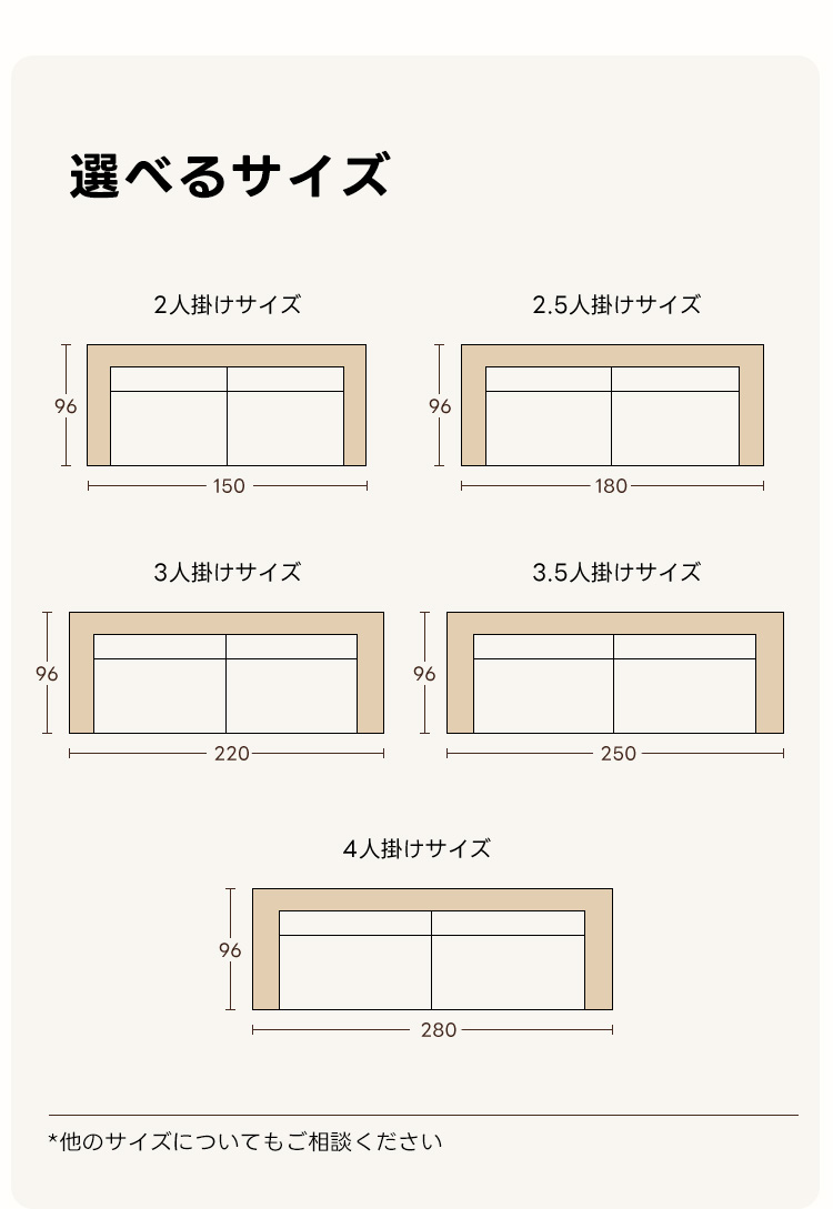 - 【多様なサイズバリエーション】:一人掛けから四人掛けまで、様々なサイズを取り揃えており、一人暮らしからファミリーまで幅広く対応可能です。リビングや書斎、どんなシーンでも活躍するデザインで、家族や友人と過ごす時間をより快適にします。