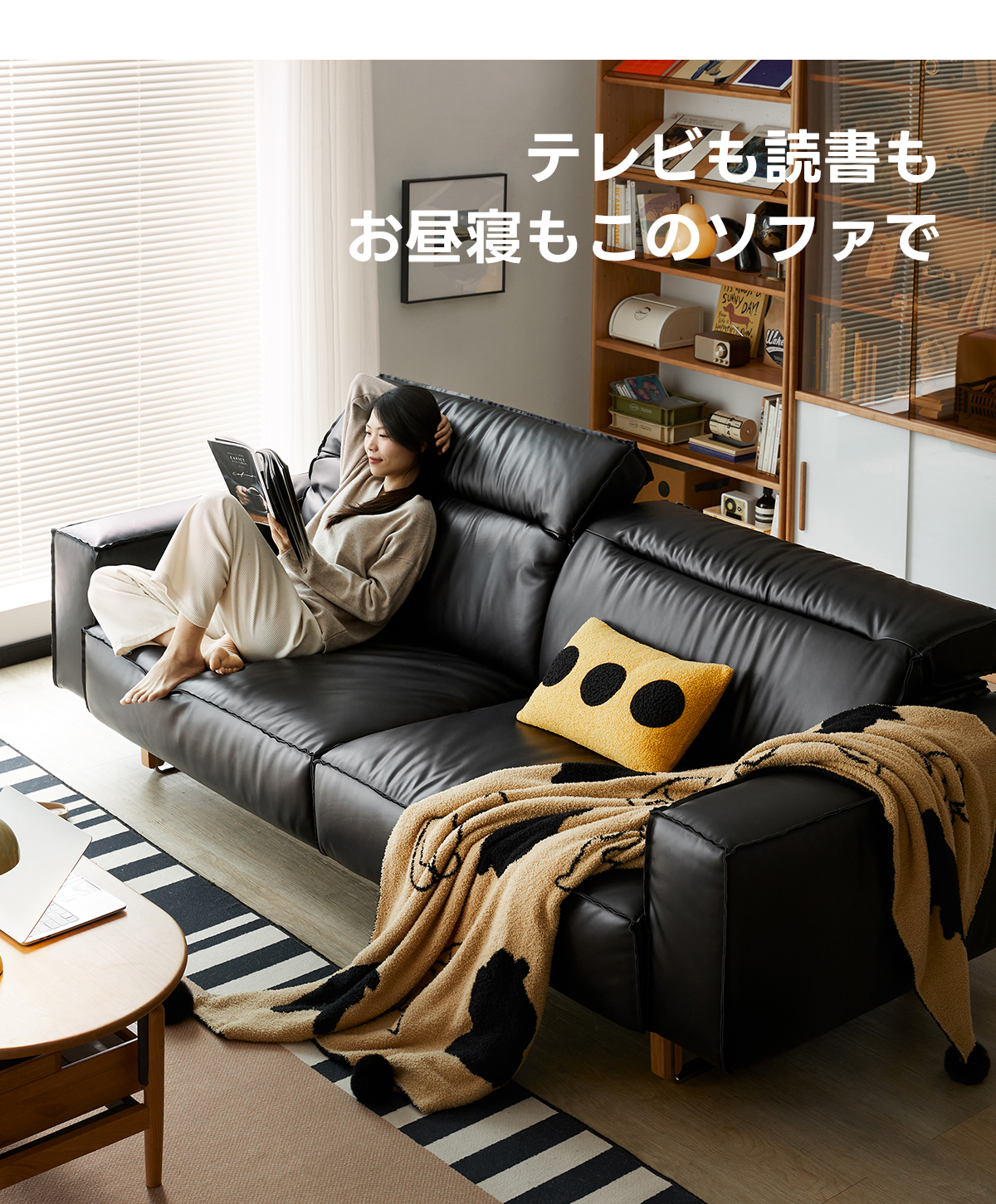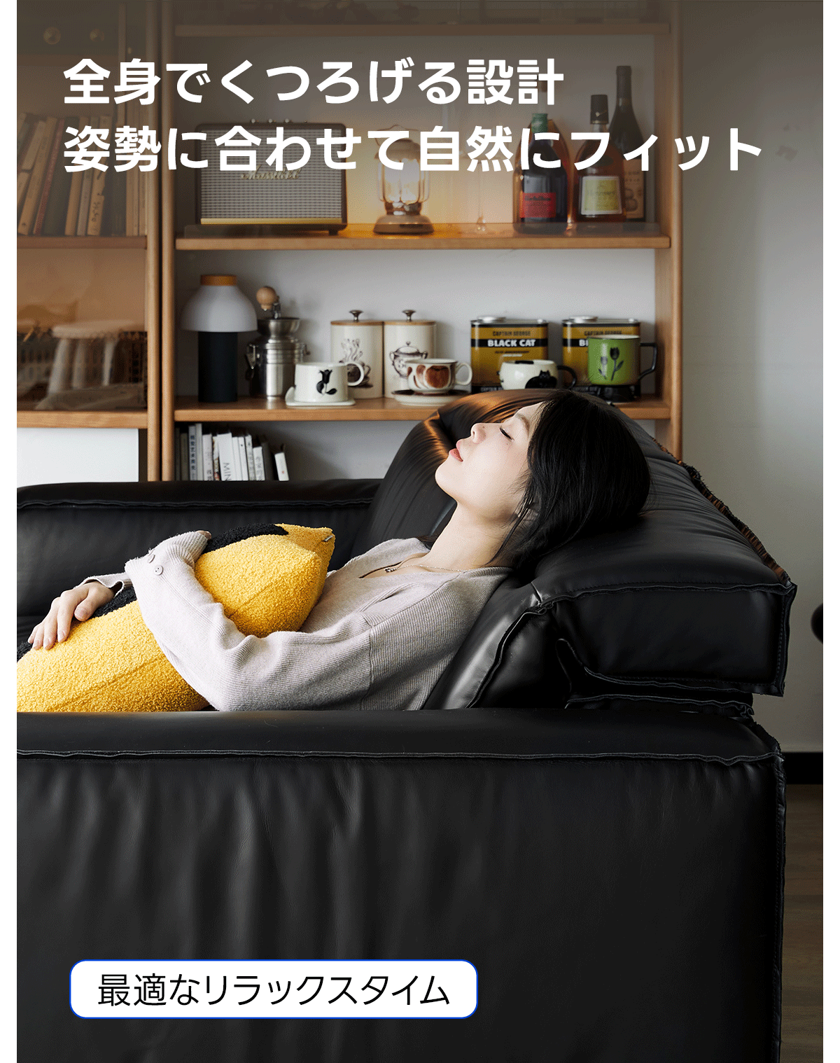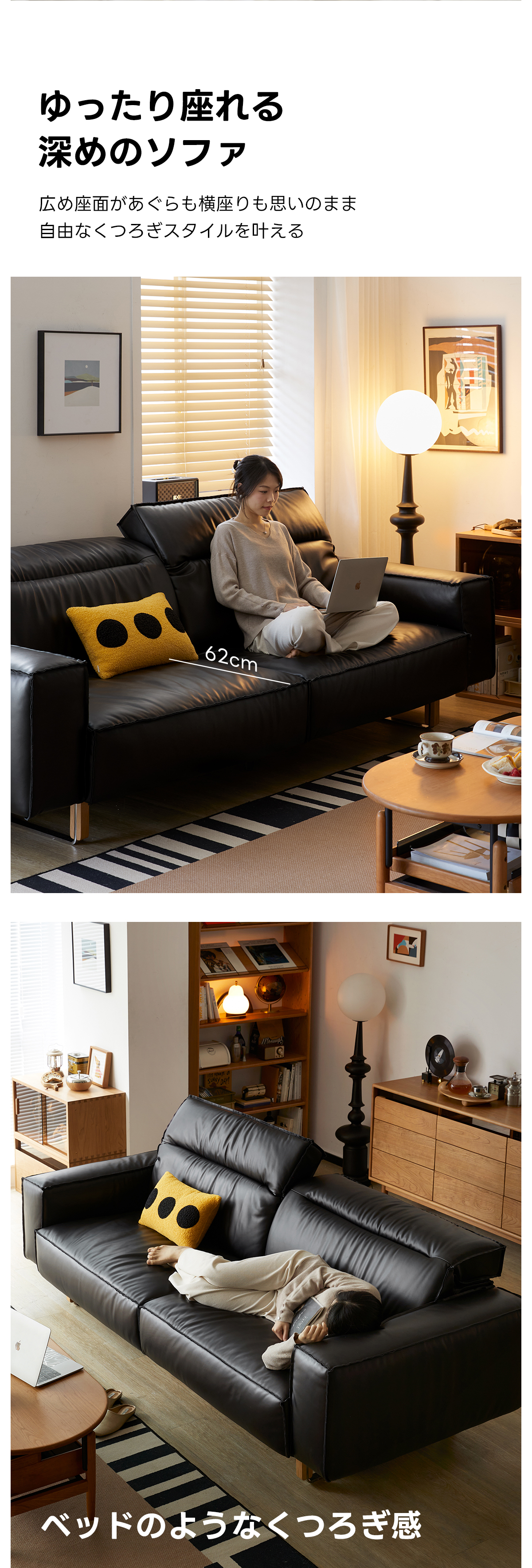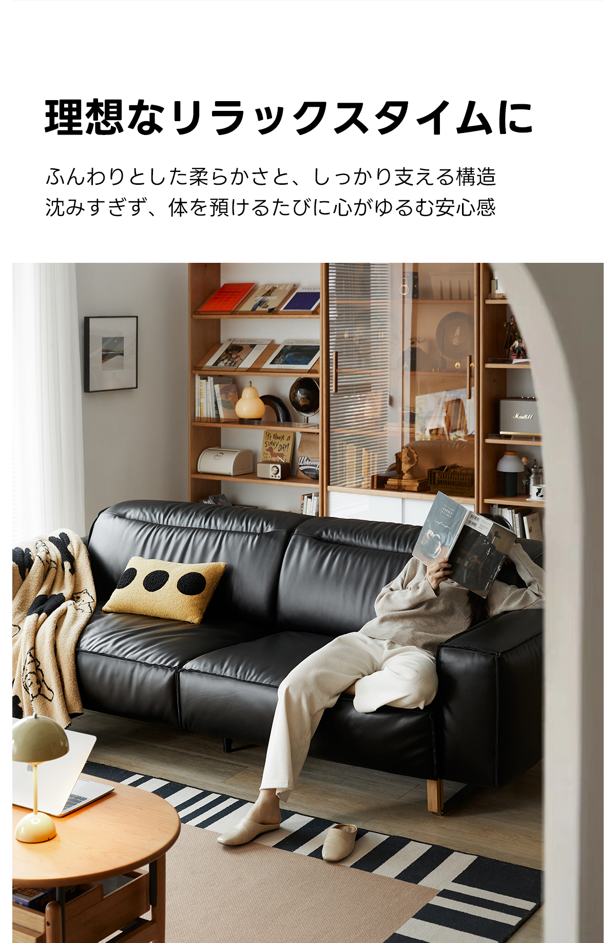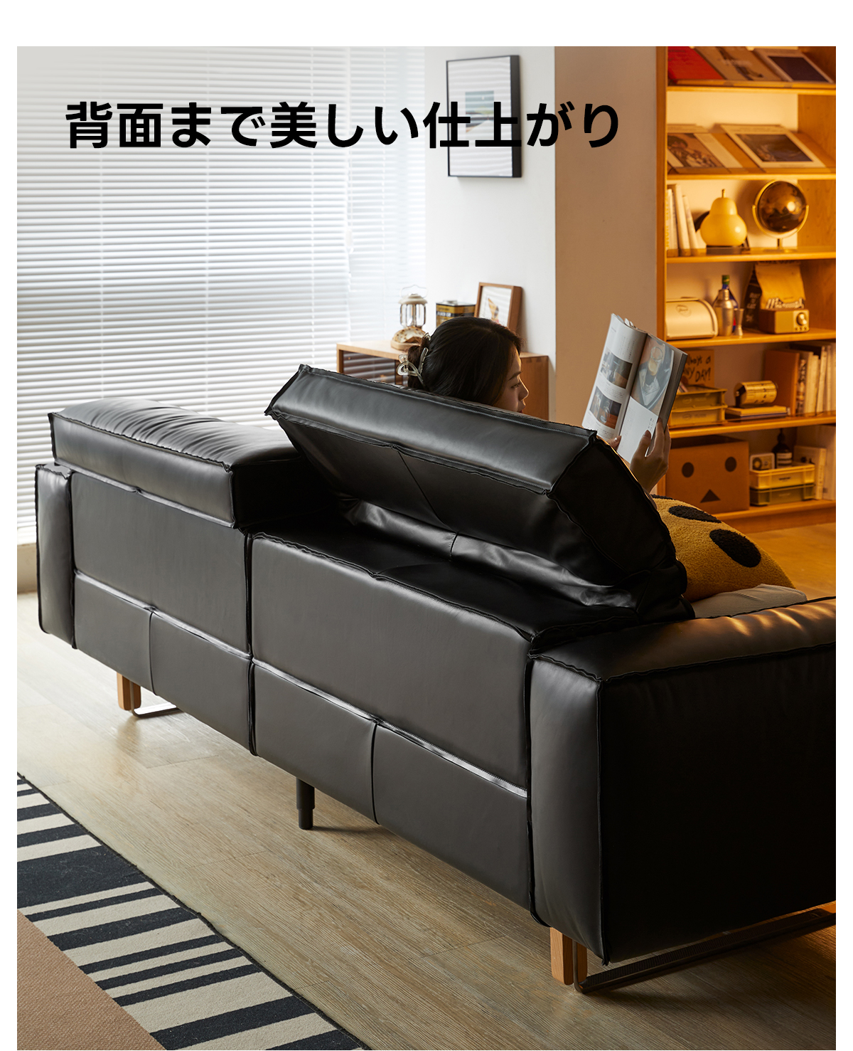 - 【調整可能なヘッドレスト&快適な座り心地】:調整可能なヘッドレストを備えたブラックレザーソファは、自然な姿勢をサポートし、快適な座り心地を提供します。高反発ウレタンを使用しており、しっかりとした弾力性で長時間座ってもへたりにくい構造です。