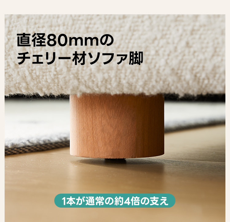 - 【チェリー材の脚で安定感抜群】:チェリー材の脚は直径80mmで、通常の約4倍の支えを提供し、安定感があります。360度どこから見ても美しいデザインで、部屋の中心に置いても映えます。低めの設計で視覚的に圧迫感を抑え、空間を広く感じさせます。