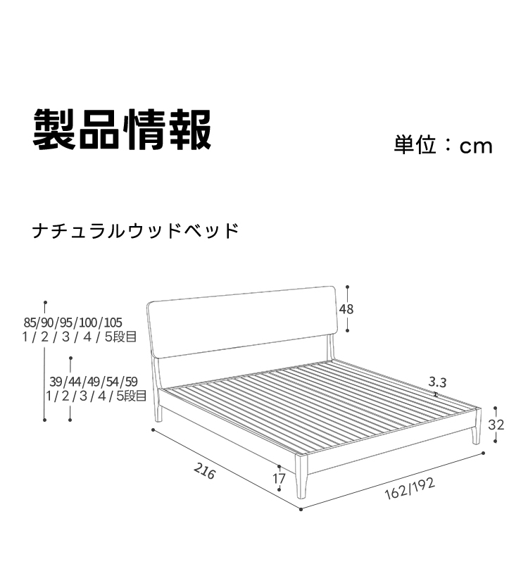 - 【ヴィンテージ感あふれるデザイン】ナチュラルウッドベッドは、ヴィンテージ感が漂うライトブラウンの木材を使用し、どんな寝室にも調和するシンプルで飽きのこないデザインが特徴です。ワイドダブルベッドやキングベッドのサイズ展開で、様々なライフスタイルに対応します。