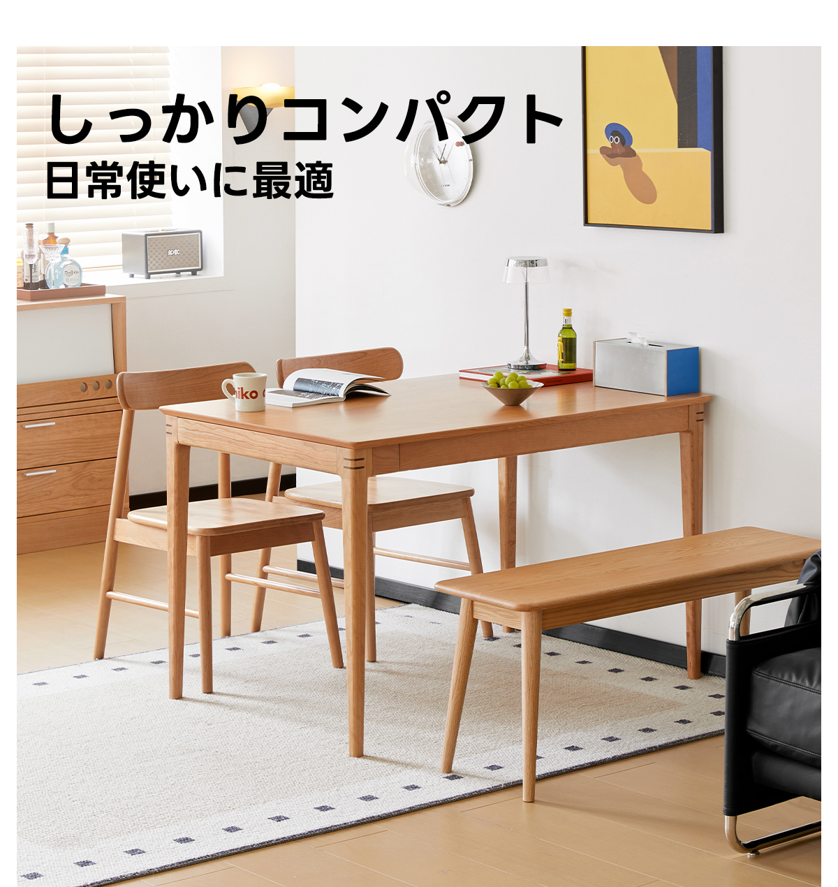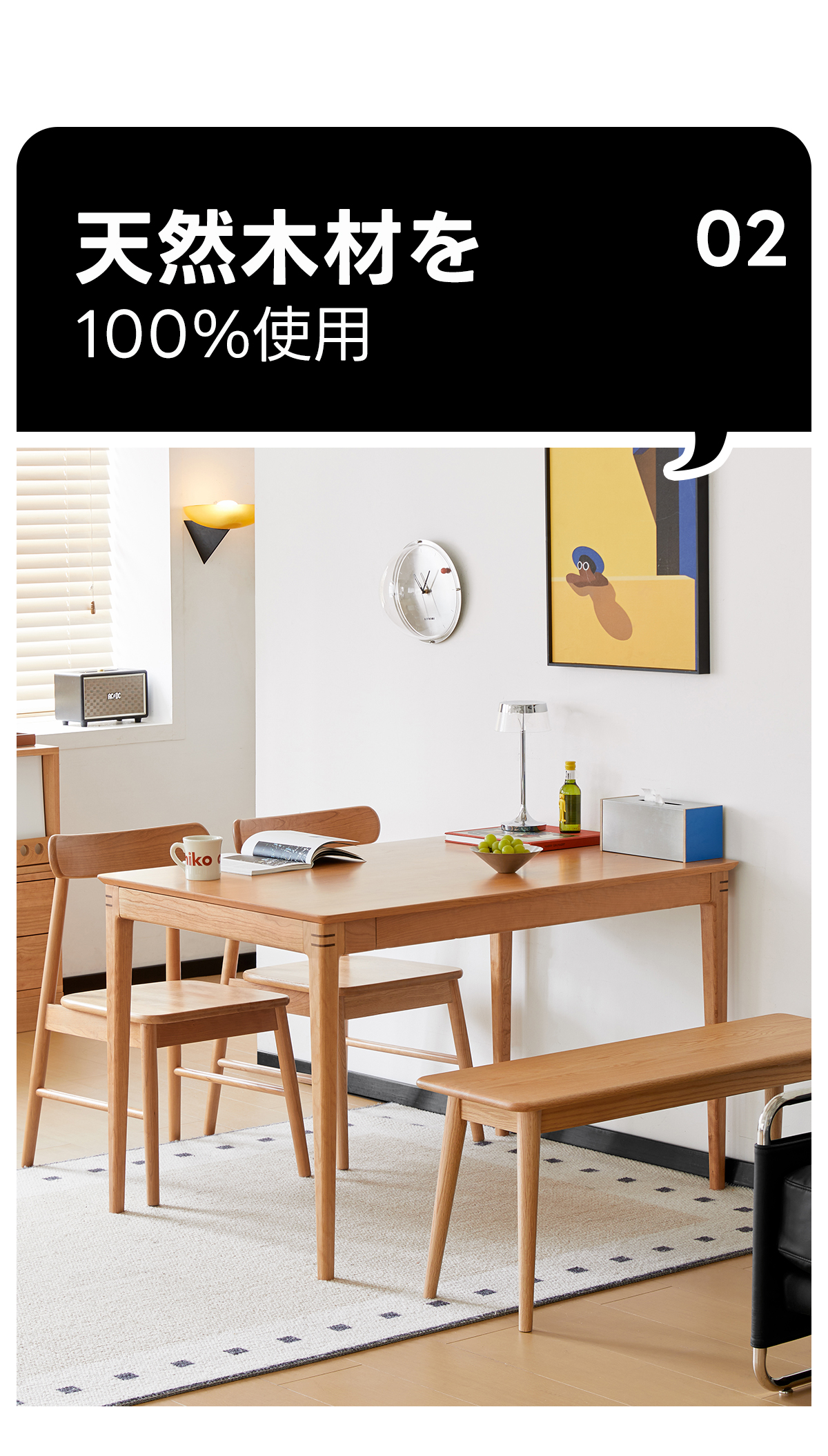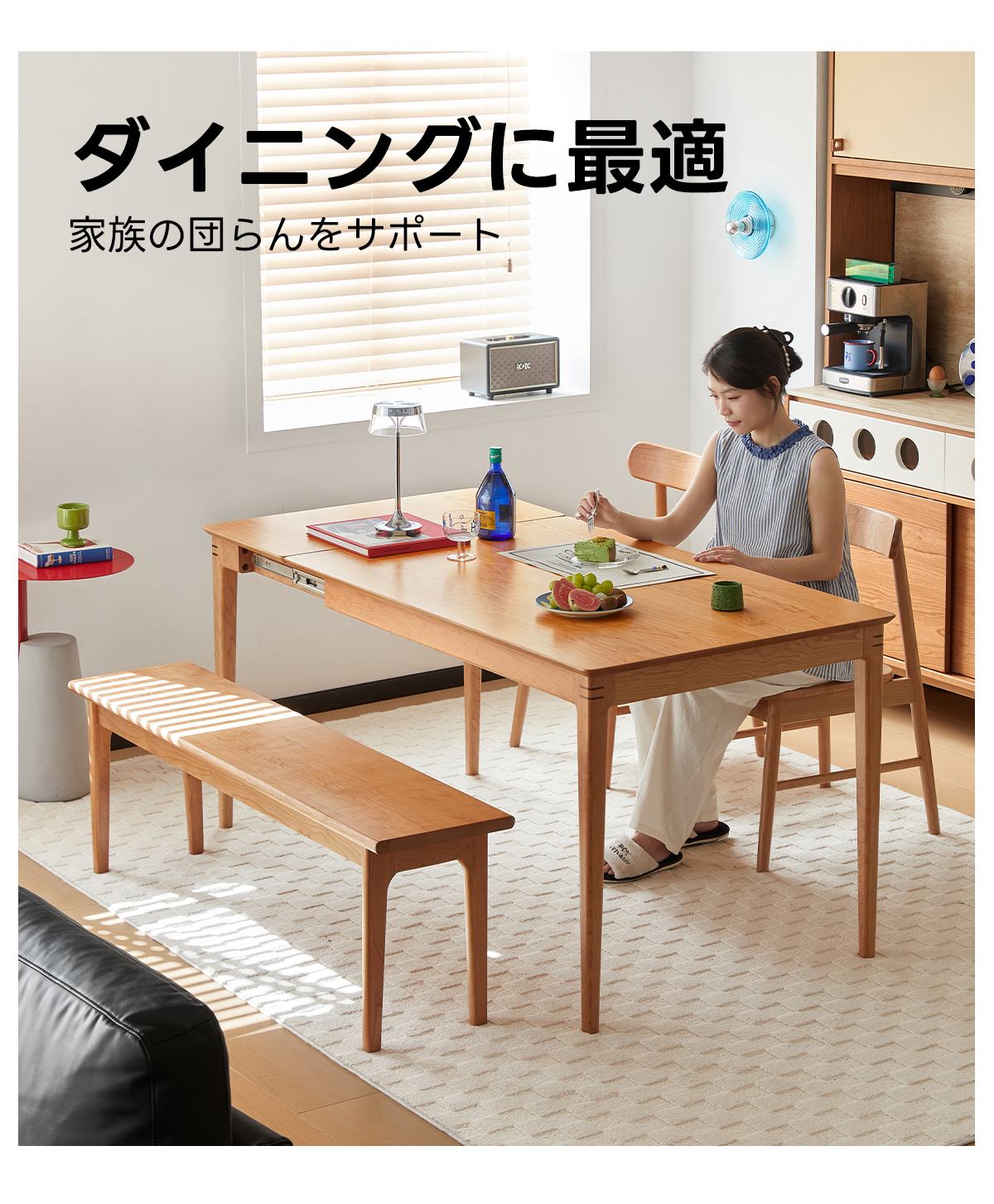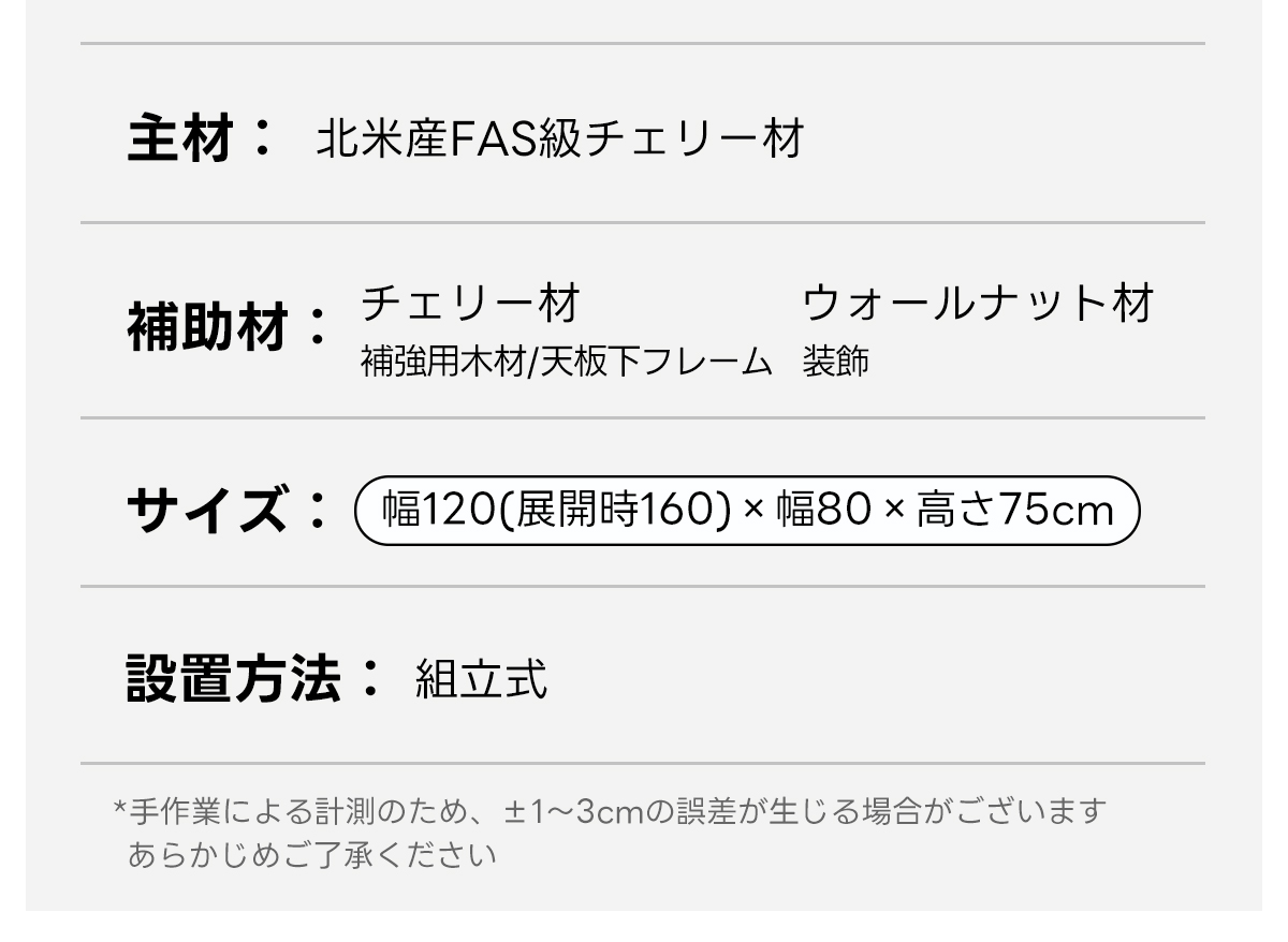 - 【高品質な素材とデザイン】:北米産FAS級チェリー材を100%使用し、耐久性と美しい木目が特徴です。補助材にはウォールナット材を使用し、高級感をさらに引き立てています。環境に優しい塗料を使用し、食品を直接置いても安心です。