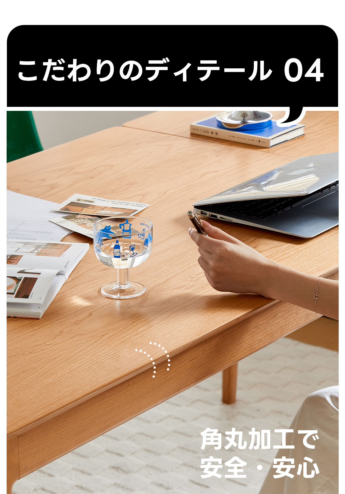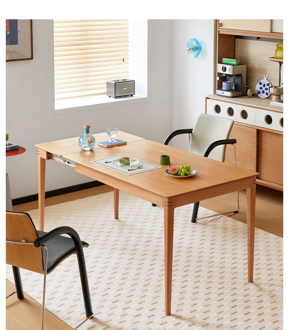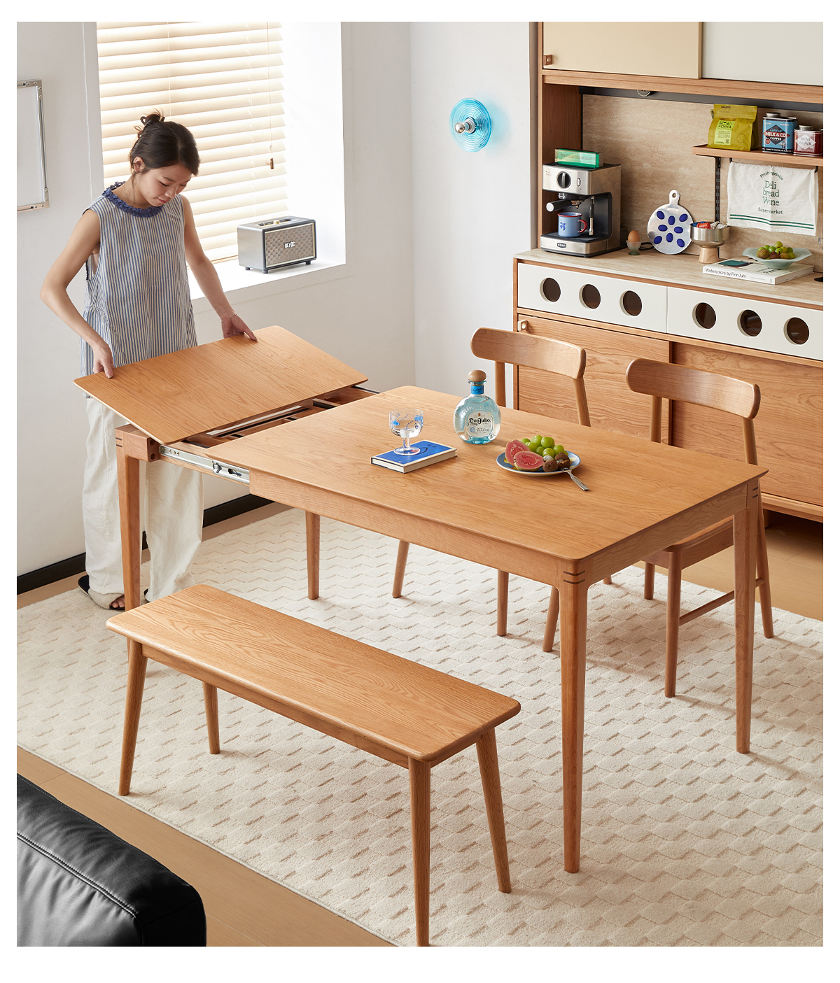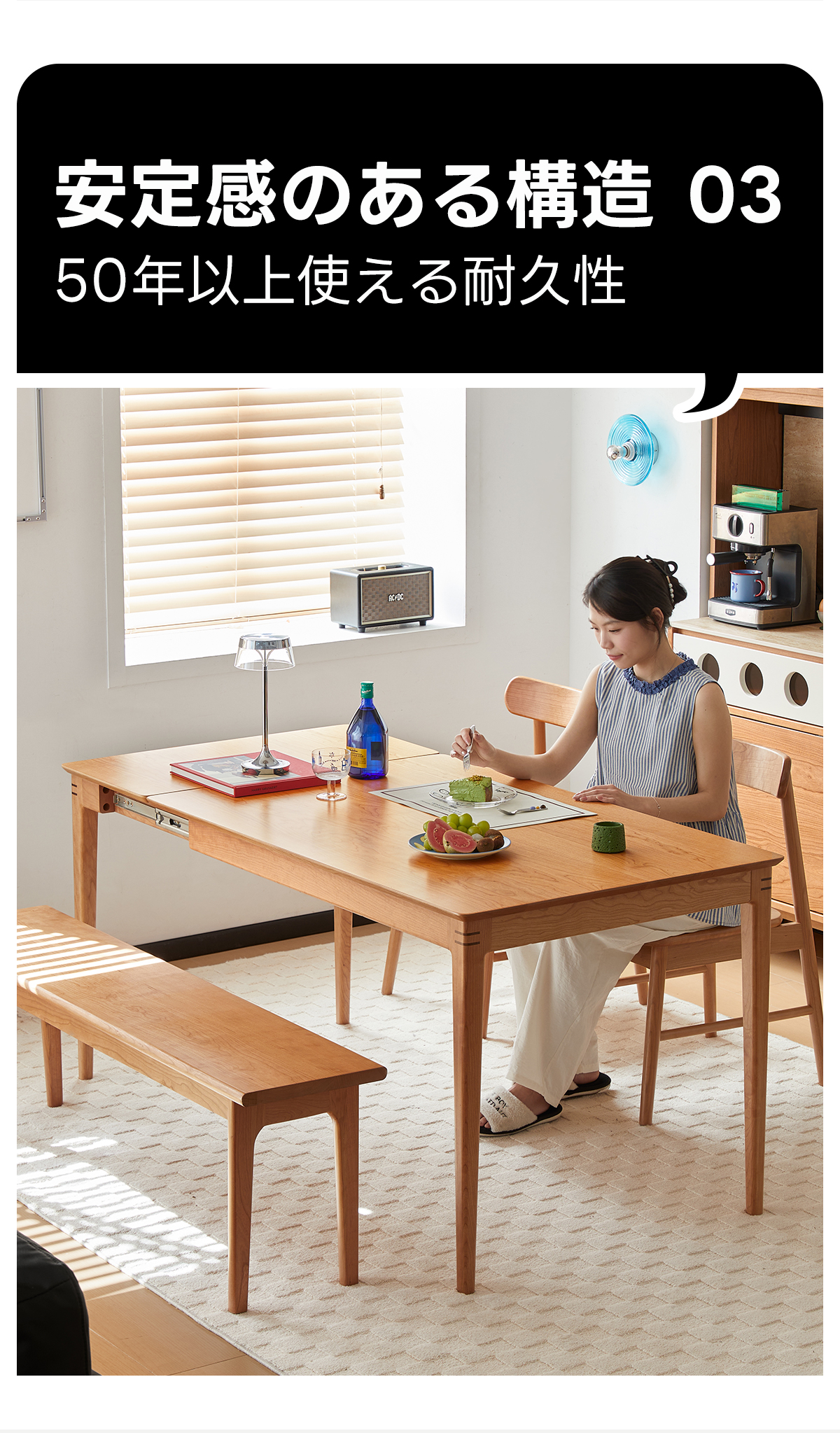 - 【高品質な素材とデザイン】:北米産FAS級チェリー材を100%使用し、耐久性と美しい木目が特徴です。補助材にはウォールナット材を使用し、高級感をさらに引き立てています。環境に優しい塗料を使用し、食品を直接置いても安心です。