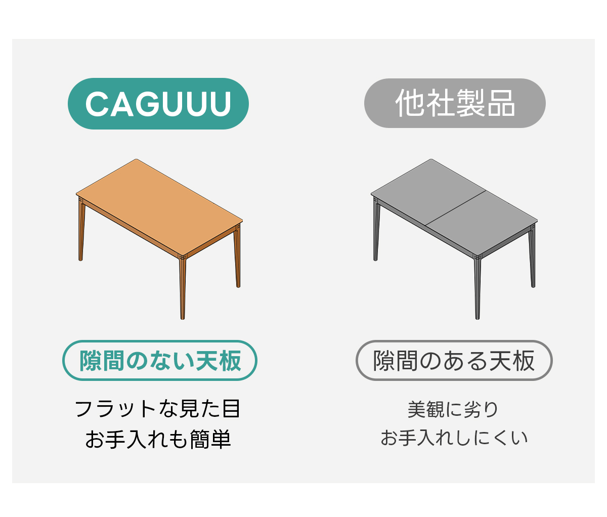- 【安心の使用感と価値】:隙間のない天板デザインは見た目が美しく、お手入れも簡単です。厚さ6cmの頑丈な脚部と7cm幅の幕板が安定感を提供し、長期間使用しても歪みやガタつきがありません。ユーザーに安心感を与えます。
