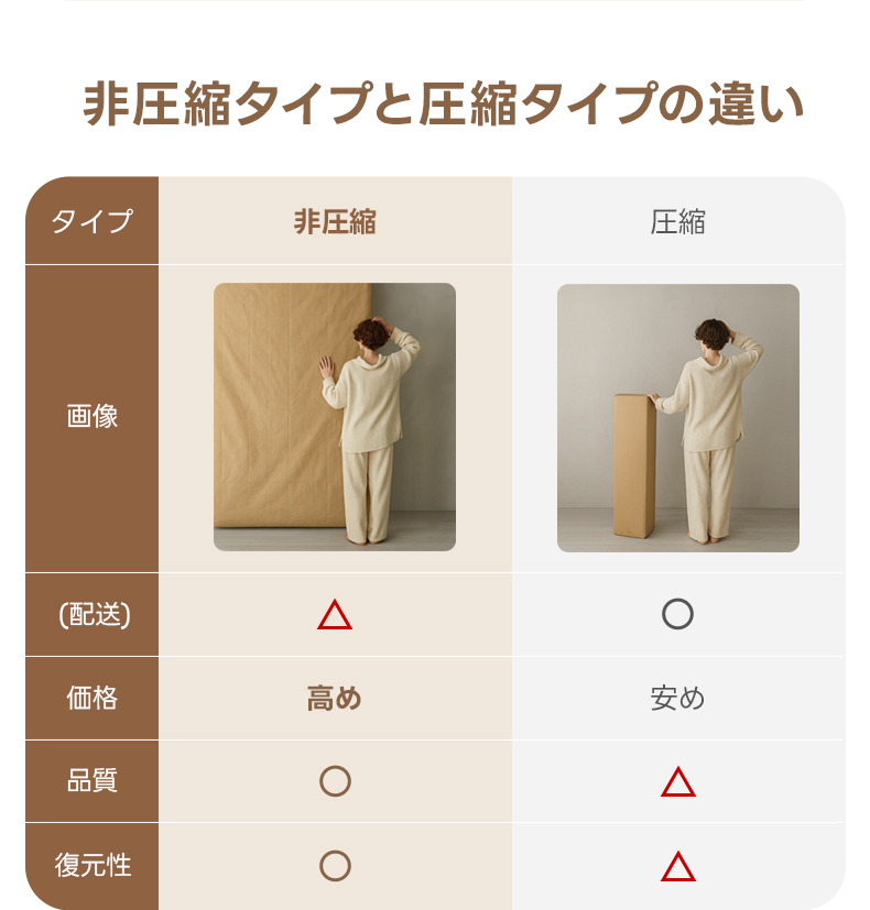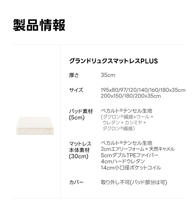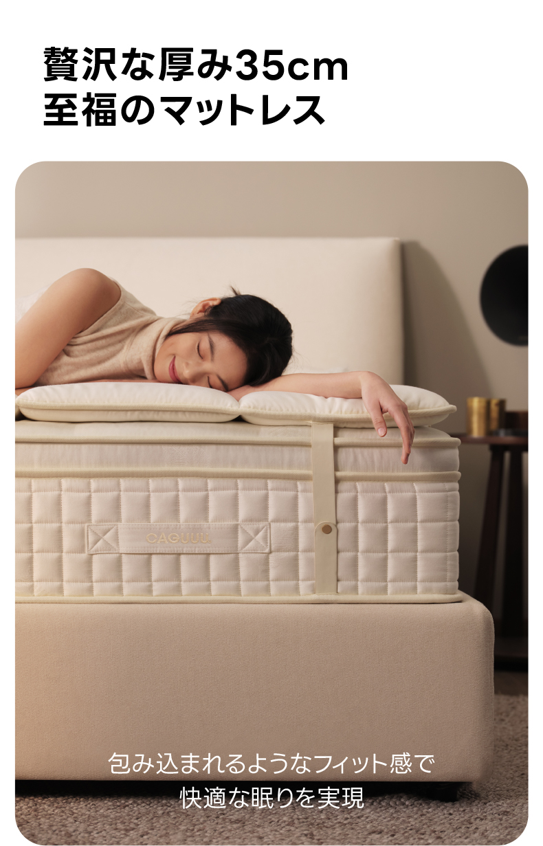 - 【贅沢な厚みと非圧縮設計】:マットレスの厚さは35cmで、包み込まれるようなフィット感を提供します。非圧縮タイプで製造時の形をそのままお届けし、長期間使用しても寝心地が劣化しにくいです。