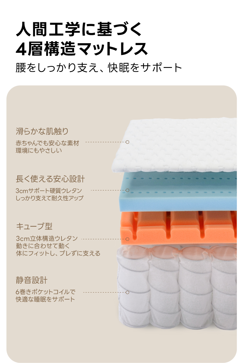 - 【体圧分散&しっかりサポート】:高反発クッションと4層構造により、体圧を均等に分散し、理想の寝姿勢をサポートします。腰や背中への負担を軽減し、快適な眠りを提供します。