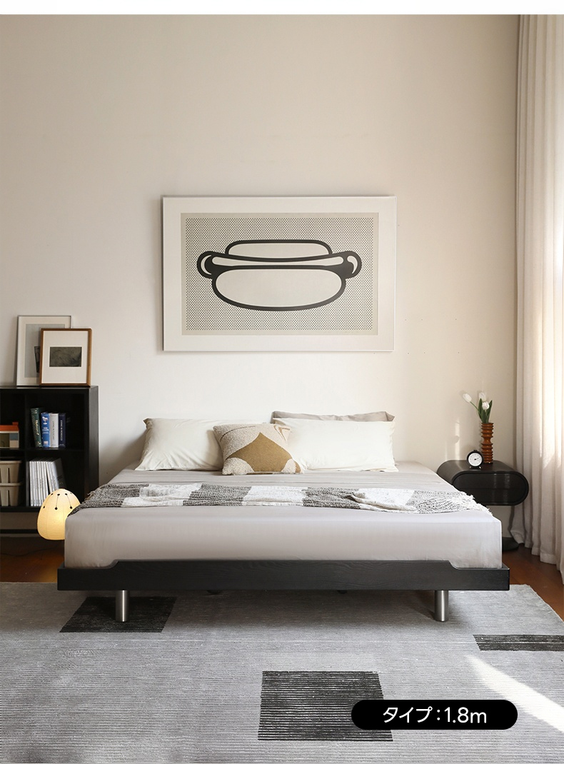 シンプルモダンウッドフレームベッド