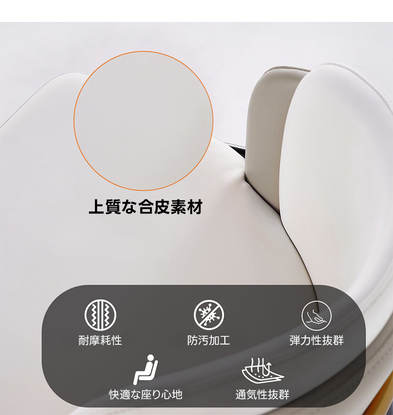 - 【高品質な素材とデザイン】:合皮素材と高反発ウレタンを使用し、耐摩耗性と防汚加工が施されています。頑丈なブラックメタル脚部がしっかりと支え、耐久性に優れた設計です。どんなインテリアにも調和するホワイトカラーが魅力です。
