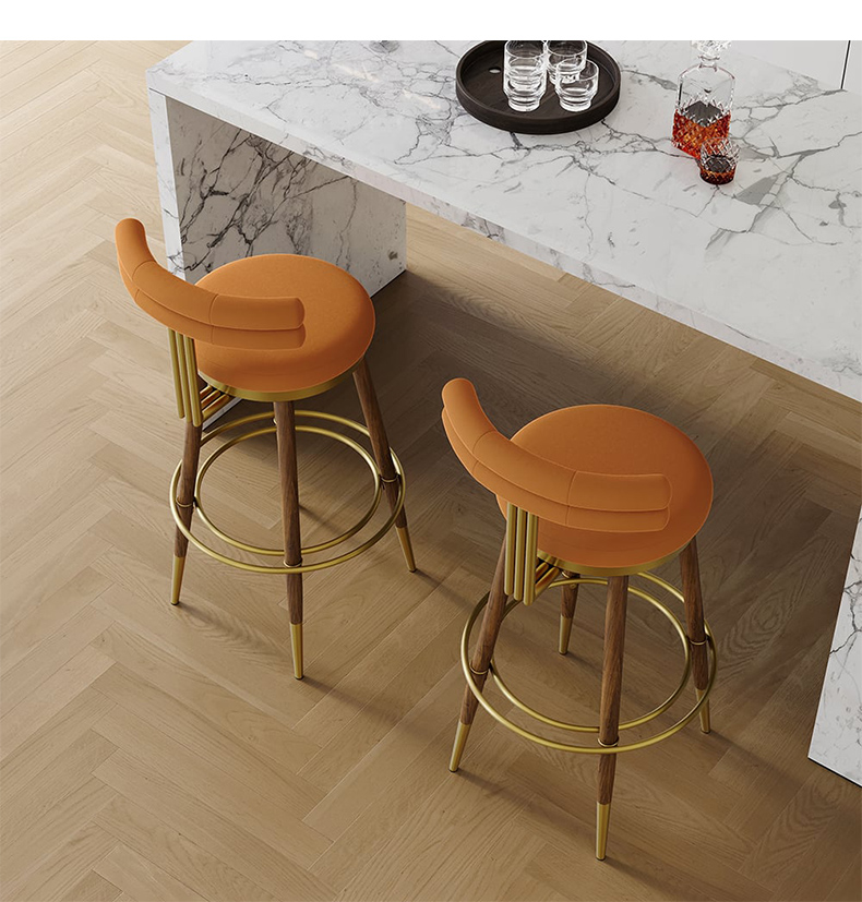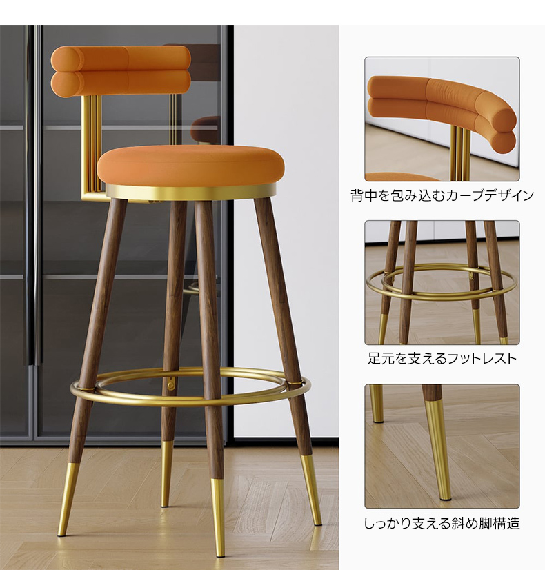 - 【スタイリッシュなデザインと快適な座り心地】モダンラウンドバースツールは、ラグジュアリーなデザインと快適な座り心地を提供します。鮮やかなオレンジ色の合皮が空間に華やかさを加え、ダイニングやバーエリアにぴったりです。快適な背もたれと足置き付きで、長時間の使用でも疲れにくい設計です。