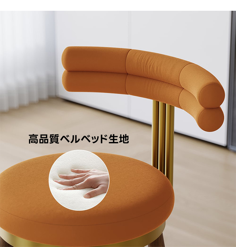 - 【高品質な素材と頑丈な構造】高品質ベルベット生地とウレタンフォームを使用し、快適な座り心地を実現。ステンレススチールとカーボンスチールの異素材を組み合わせた頑丈な脚部は、耐久性と上品さを兼ね備えています。長期間の使用にも耐えられる設計です。