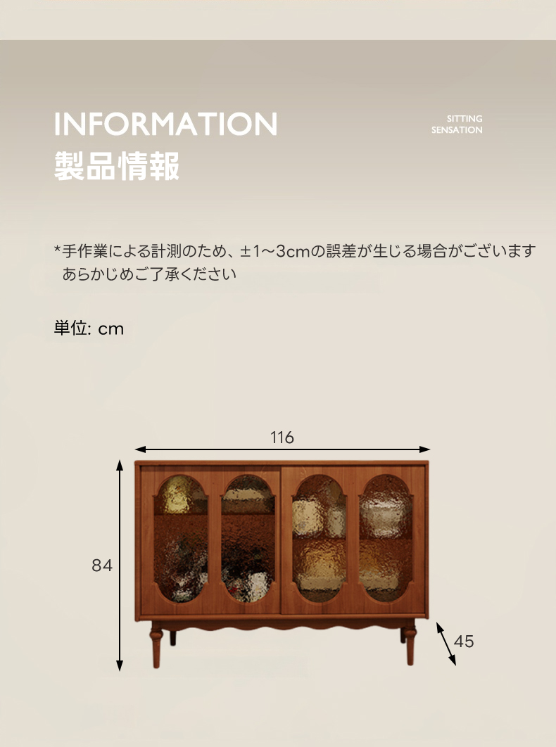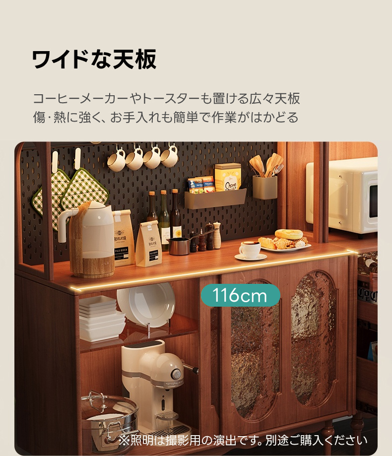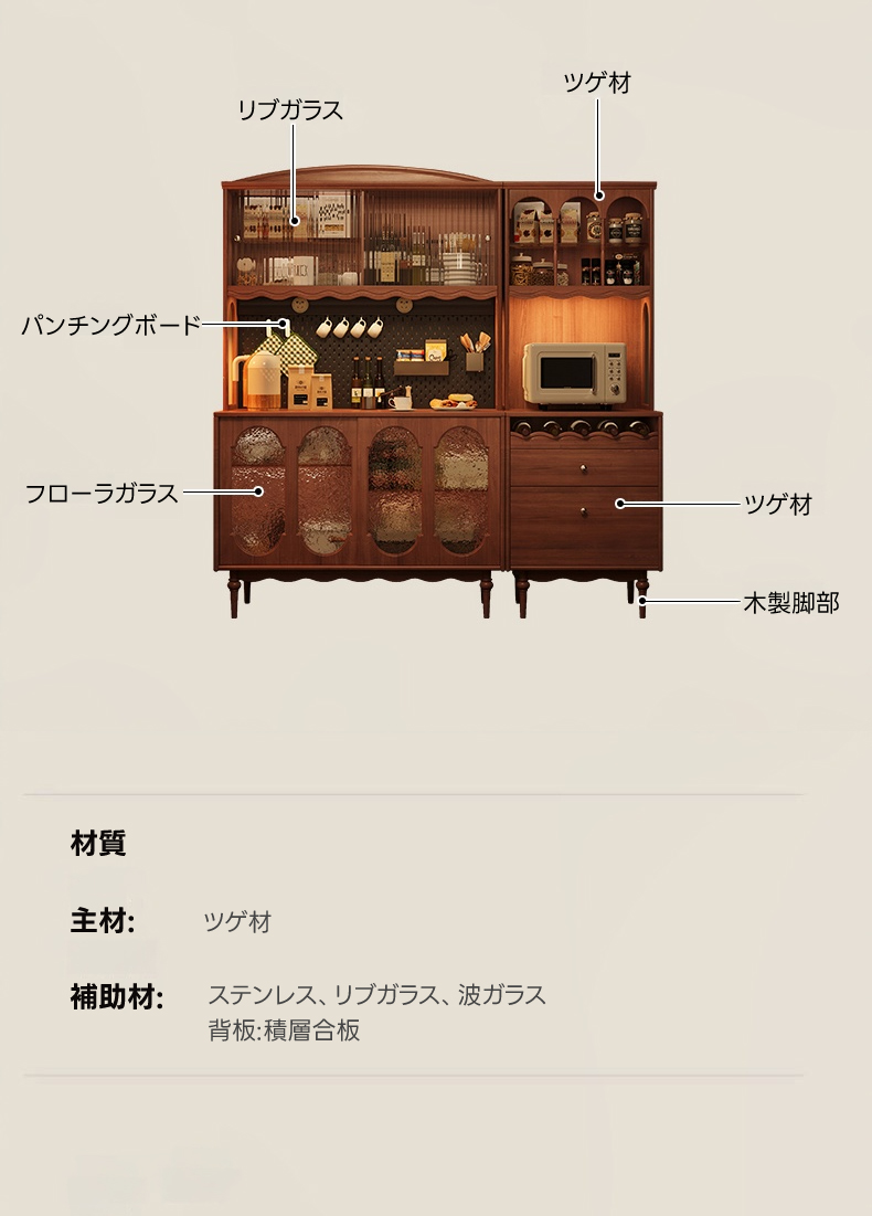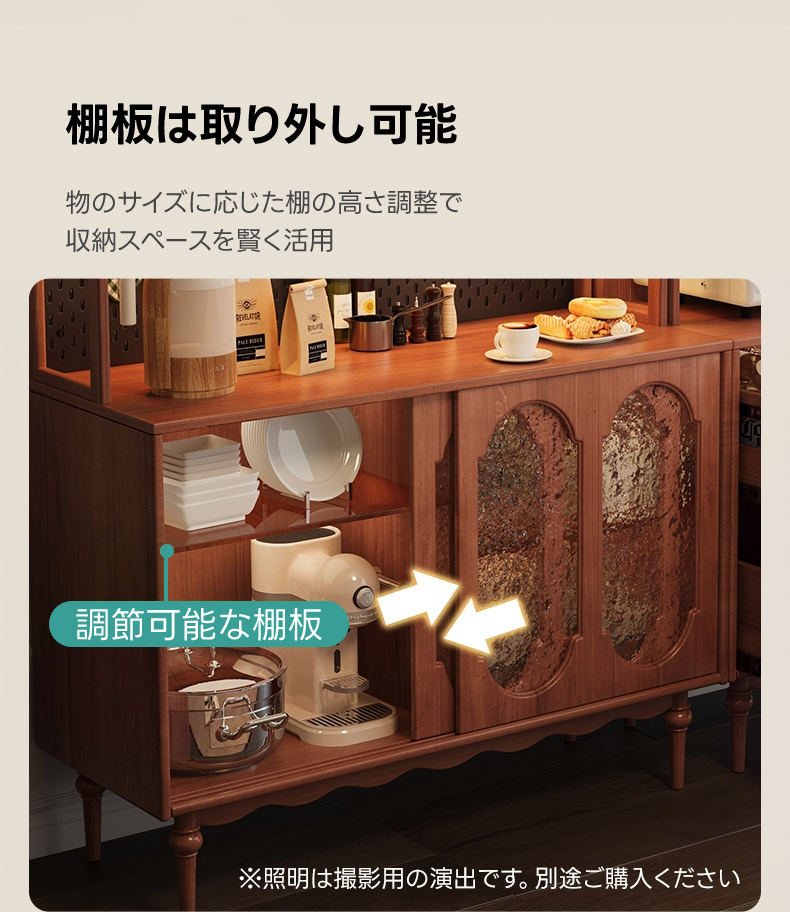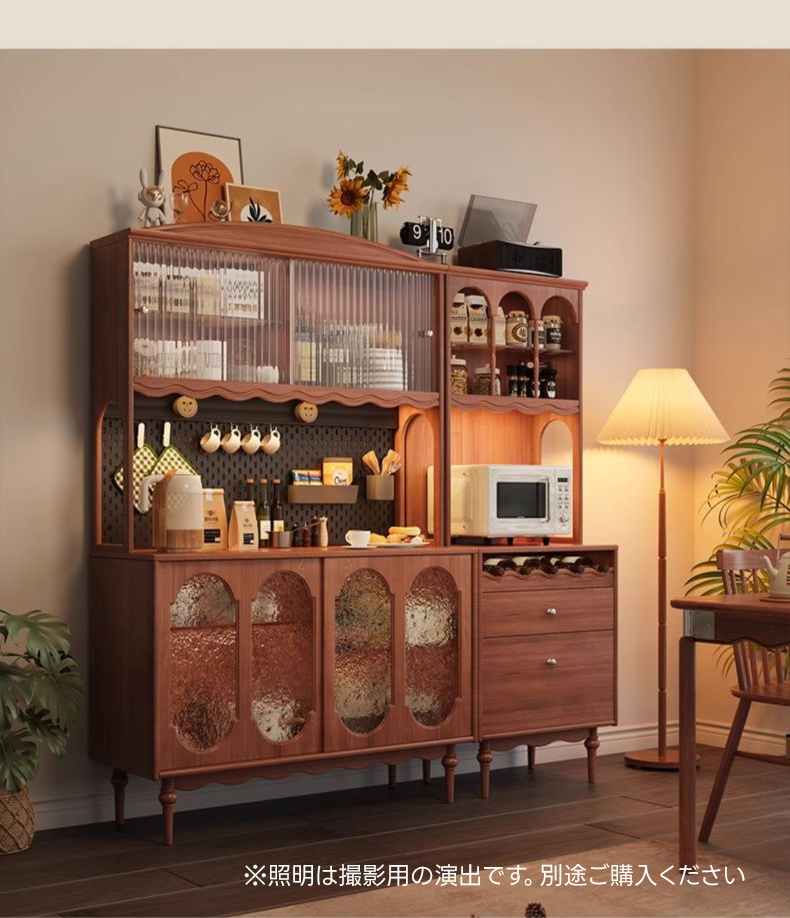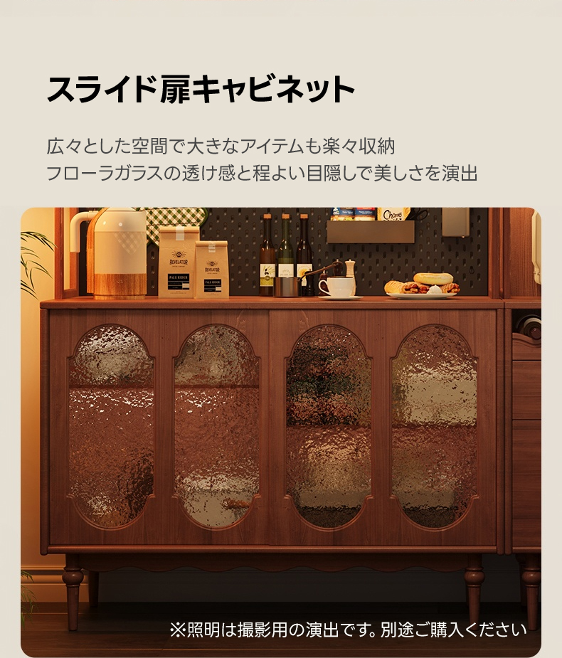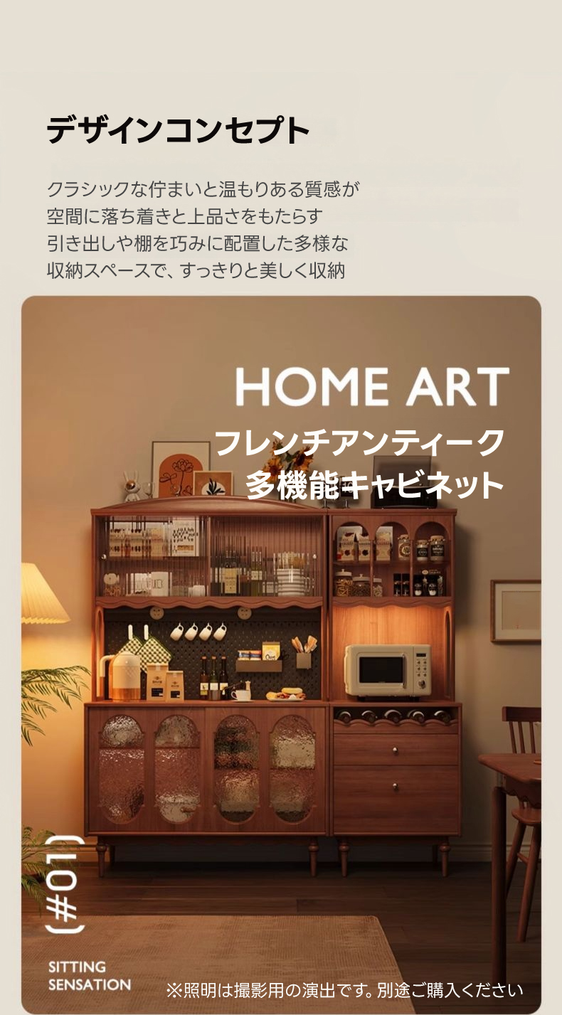 - 【多機能収納スペース】:フレンチアンティークキャビネットは、引き出しや棚が巧みに配置され、家電から小物までをすっきりと収納できます。棚板は調節可能で、収納スペースを効率的に活用できます。ダイニングルームに最適な収納家具です。