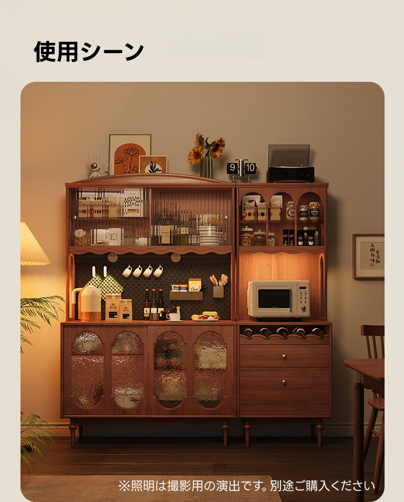 - 【ヴィンテージスタイルの魅力】:クラシックなデザインと温もりのある質感が特徴のこのキャビネットは、ダイニングルームをより一層引き立てます。家族やカップルでの使用にぴったりで、日常生活にスタイルと機能性をプラスします。