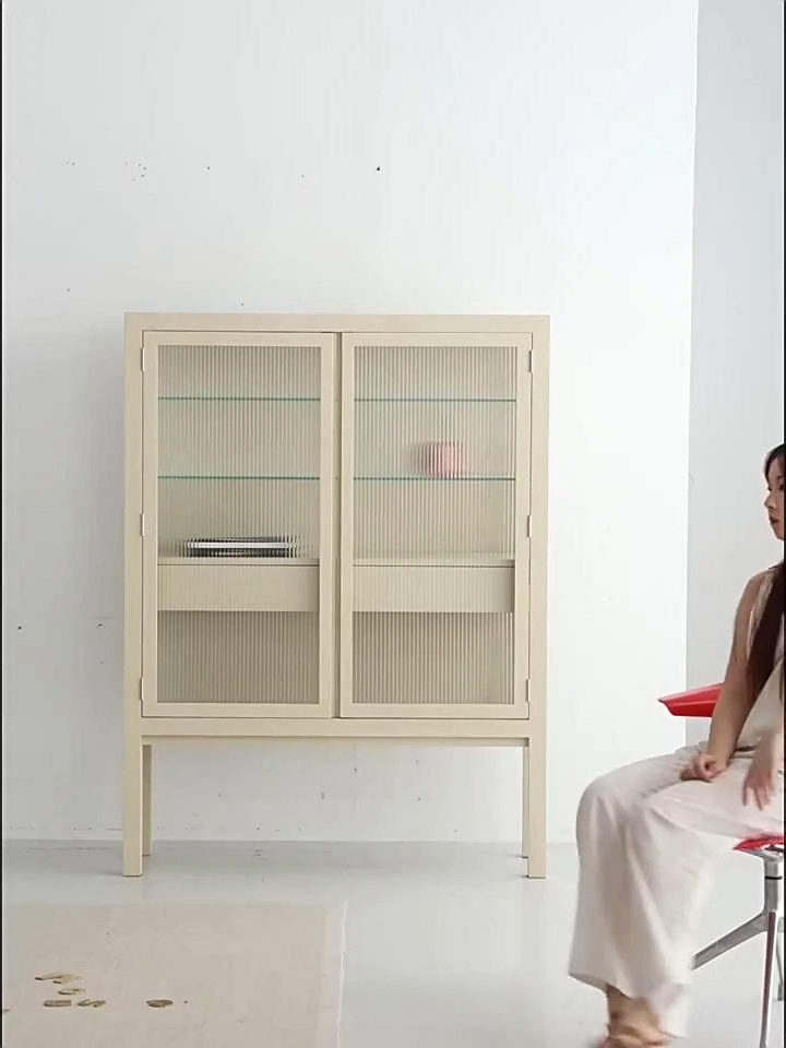 - 【優れた収納力とデザイン】リブガラスサイドキャビネットは、ホワイトアッシュ材を使用した高級感あふれるデザインが特徴です。高さ調整可能なガラス棚板と引き出し付きで、食器や雑貨をしっかり収納できます。リブガラスの扉が光を柔らかく通し、収納物を程よく見せることで、空間に明るさと奥行きを与えます。