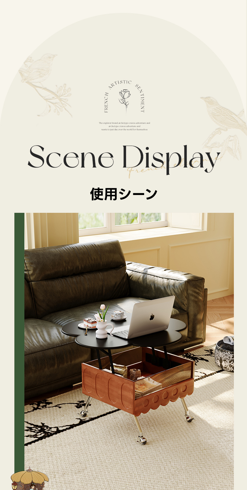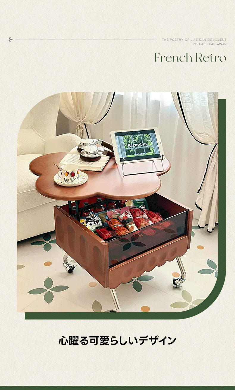 昇降式フラワーデザインティーテーブル