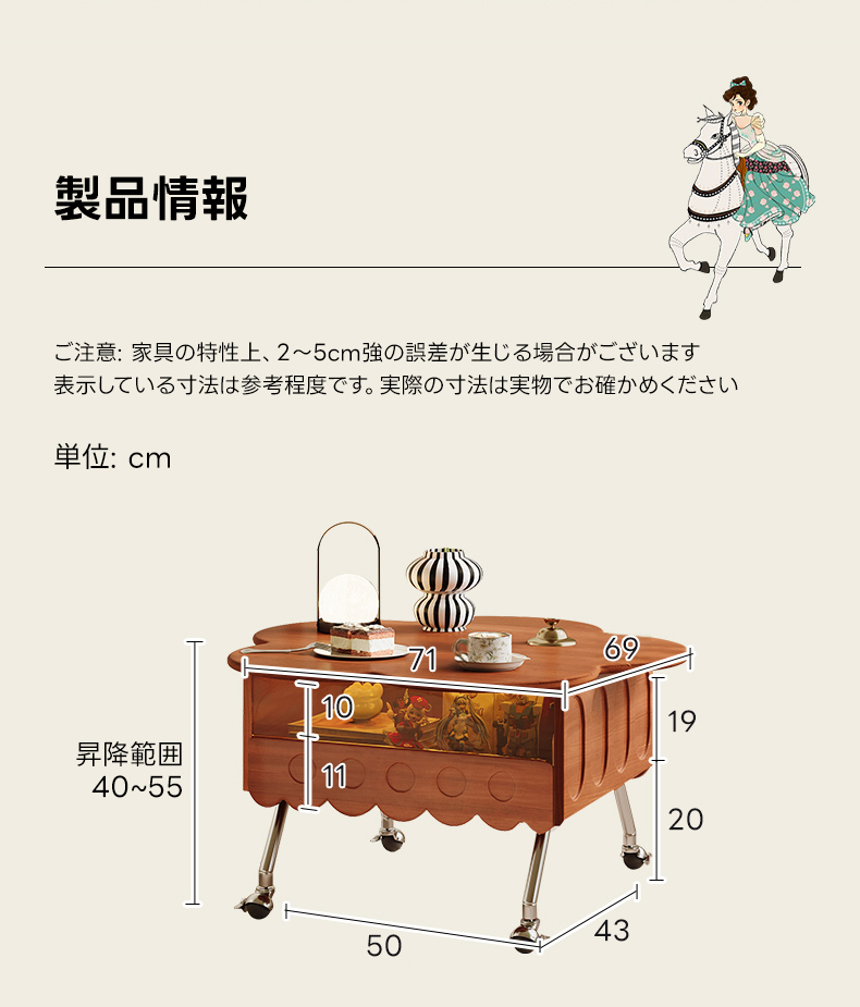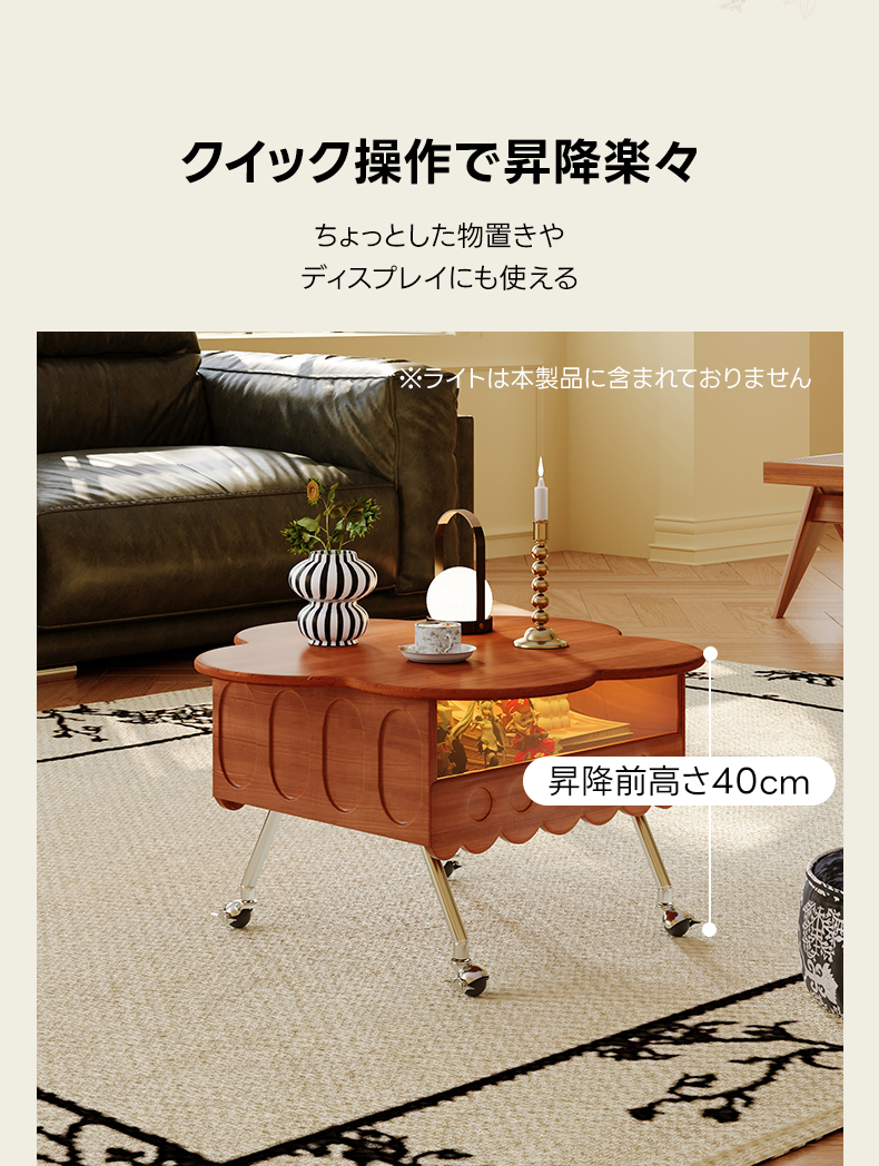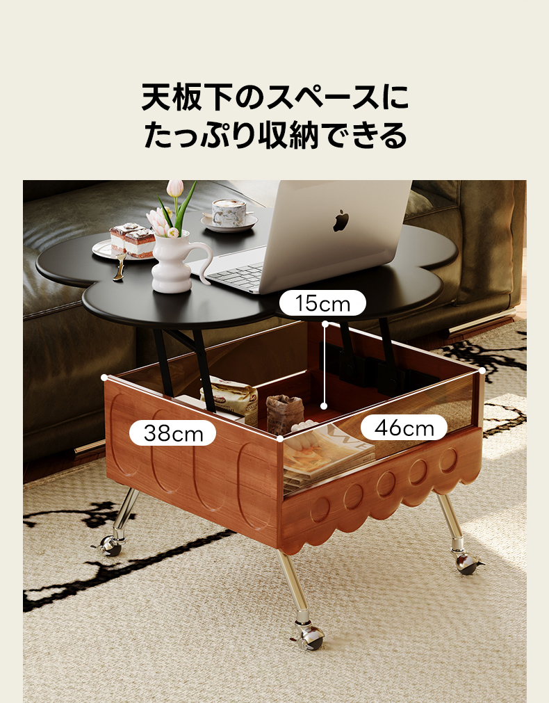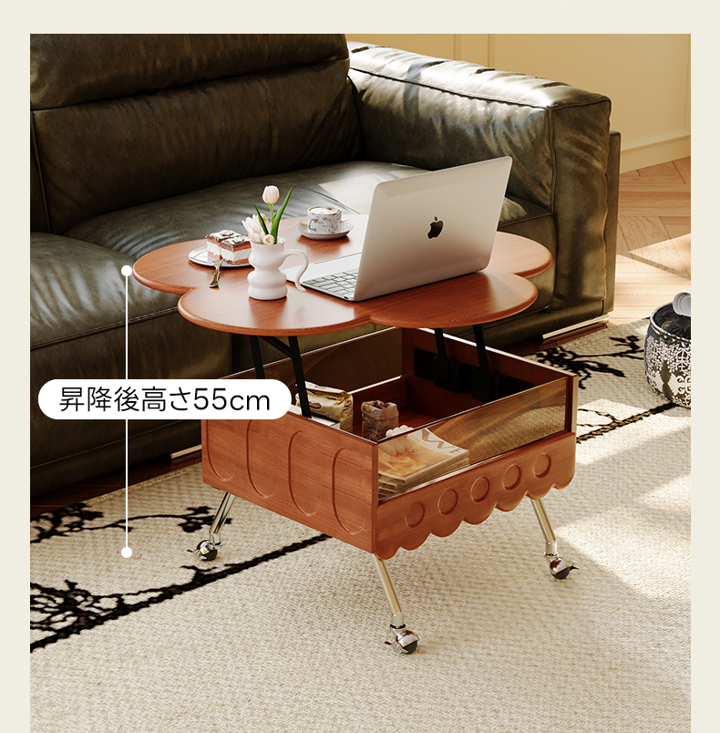 - 【昇降機能で快適な使用感】このティーテーブルは、40cmから55cmまで自由に高さを調整できる昇降機能を備えています。食事や仕事、リラックスタイムに合わせて最適な高さに設定でき、日常生活をより快適にします。