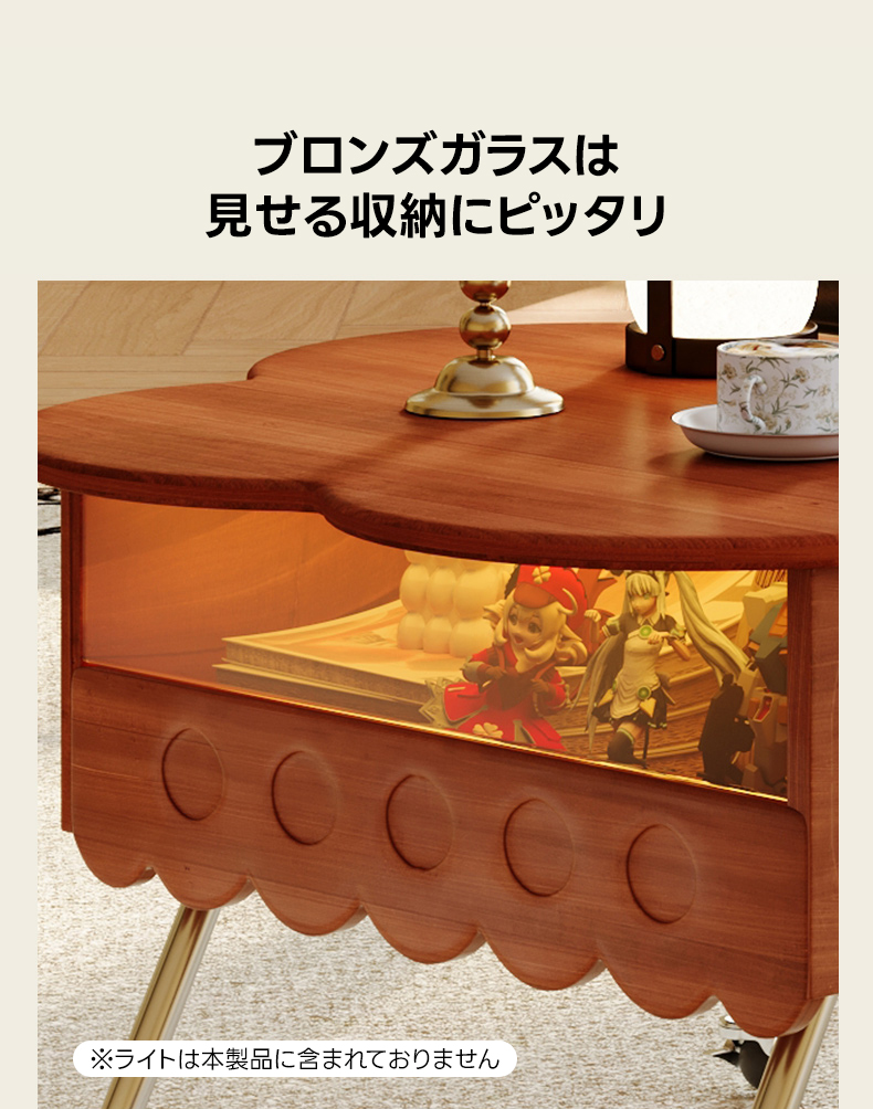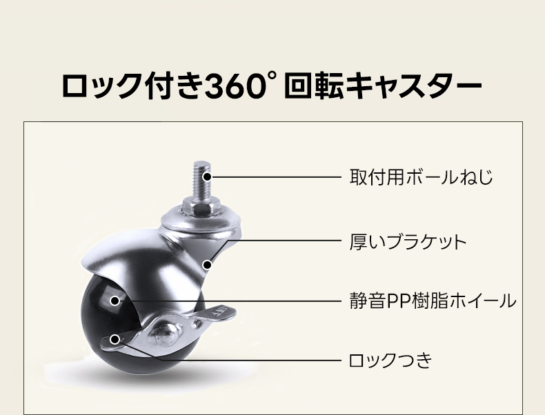 - 【ユーザーに優しい設計】360°静音キャスターにより、簡単に移動が可能で、ロック機能も搭載しているため、固定も安心です。天板下の収納スペースはブロンズガラスを使用し、見せる収納としても活用できます。