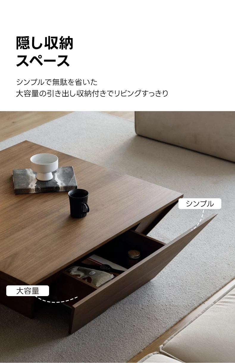 - 【快適な使用体験】内側にカットされた脚部が、足元にゆとりを生み、快適な座り心地を提供します。また、大容量の引き出し収納でリビングをすっきりと保つことができます。