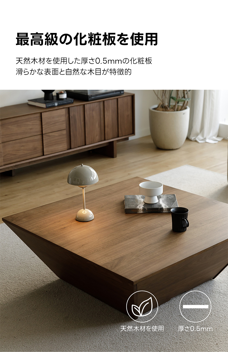 - 【シンプルで上品なデザイン】スクエアインバーステーブルは、ジャパンディスタイルに最適なシンプルで上品なデザインを追求したリビングテーブルです。どのインテリアにも調和し、空間に高級感をプラスします。