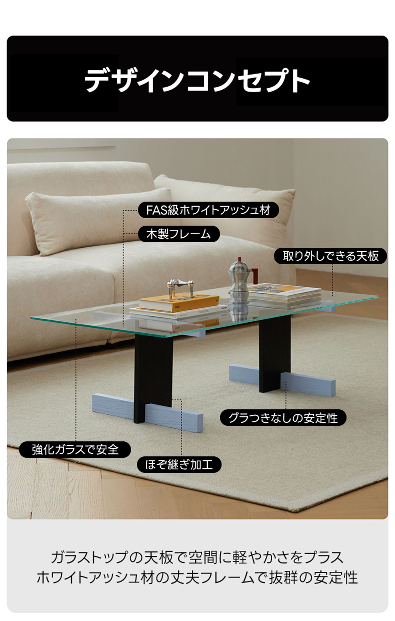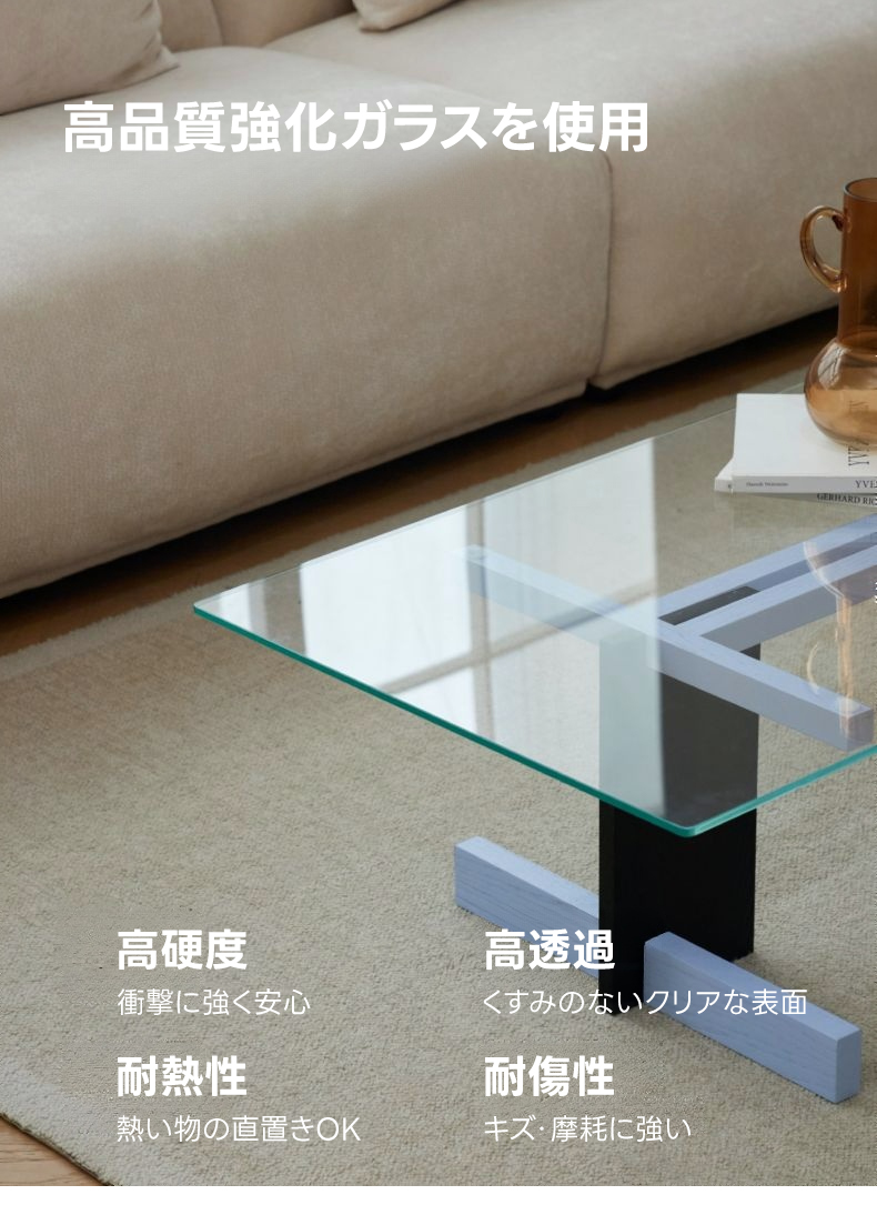 - 【高品質素材と優れた耐久性】このクリアリビングローテーブルは、FAS級ホワイトアッシュ材を使用した木製フレームと10mm厚の強化ガラス天板を採用。耐久性と美しさを兼ね備え、長期間の使用にも耐えられます。傷や汚れに強く、日常の使用に最適です。