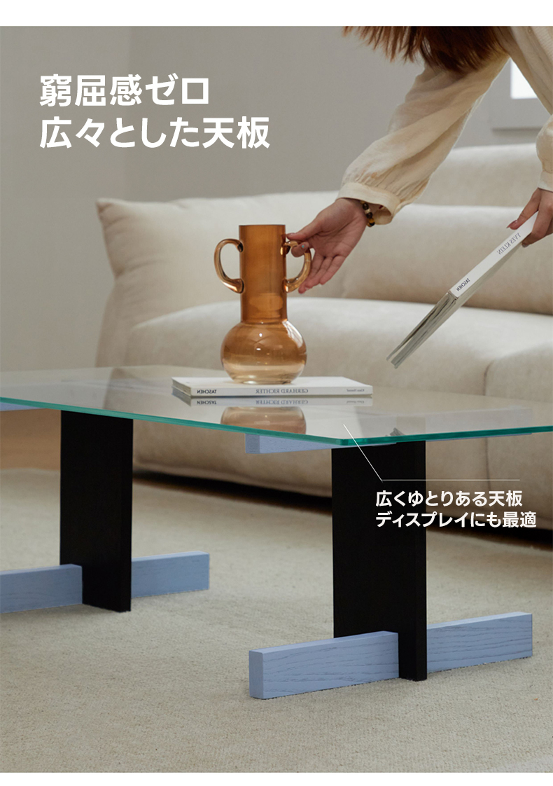 - 【洗練されたデザイン】ブラックとブルーの2色展開で、インテリアに合わせて選べます。取り外し可能なガラストップは、広々とした空間を提供し、ディスプレイにも最適です。ほぞ継ぎ加工により、安定感抜群のフレーム構造を実現しています。