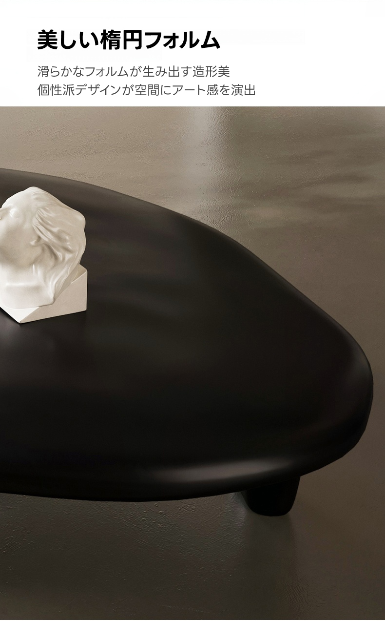 - 【モダンで洗練されたデザイン】:このオーバルローテーブルは、ブラックカラーと美しい楕円形フォルムが特徴です。どんなインテリアにもマッチし、リビングやサロン、レストランでラグジュアリーな雰囲気を演出します。滑らかな角丸加工と極太の脚部が安定性を提供し、安心して使用できます。