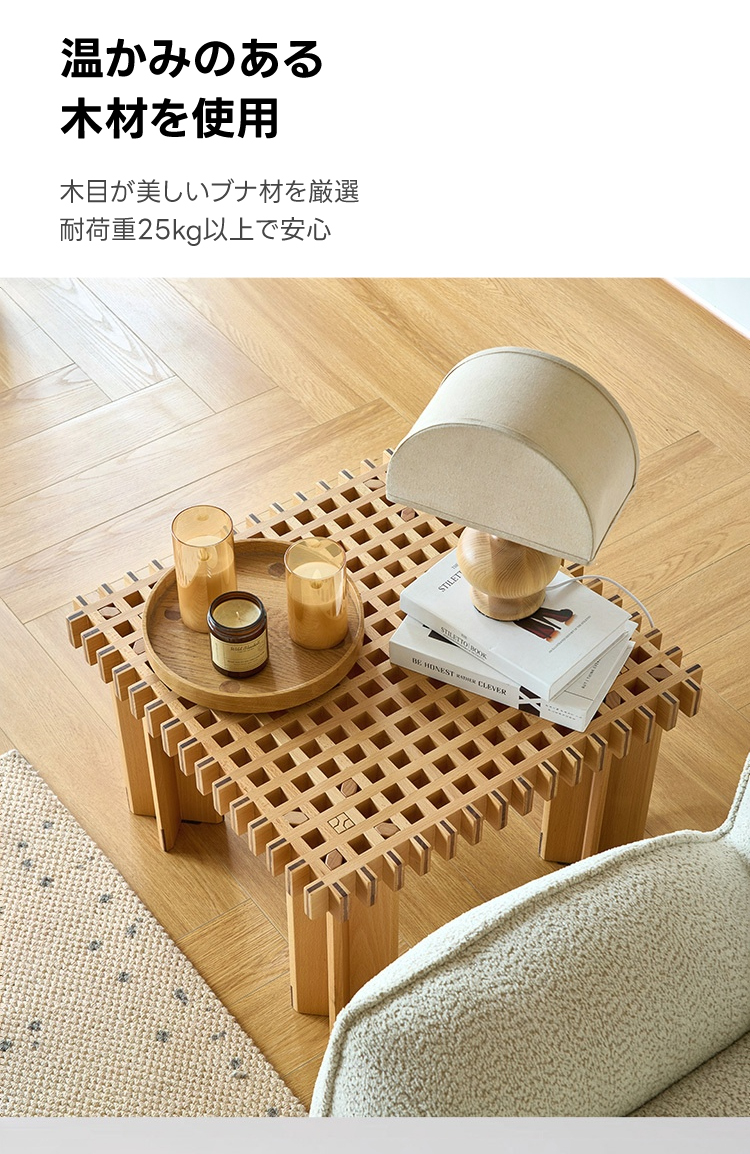 - 【高い機能性とデザイン性】グリッドティーテーブルは、格子状の天板とユニークな脚部デザインが特徴で、空間に軽やかさをプラスします。耐荷重25kg以上で、様々な用途に安心して使用可能です。