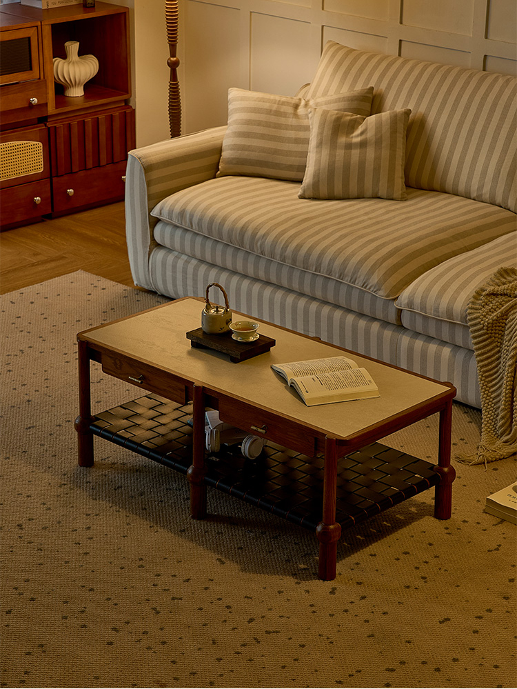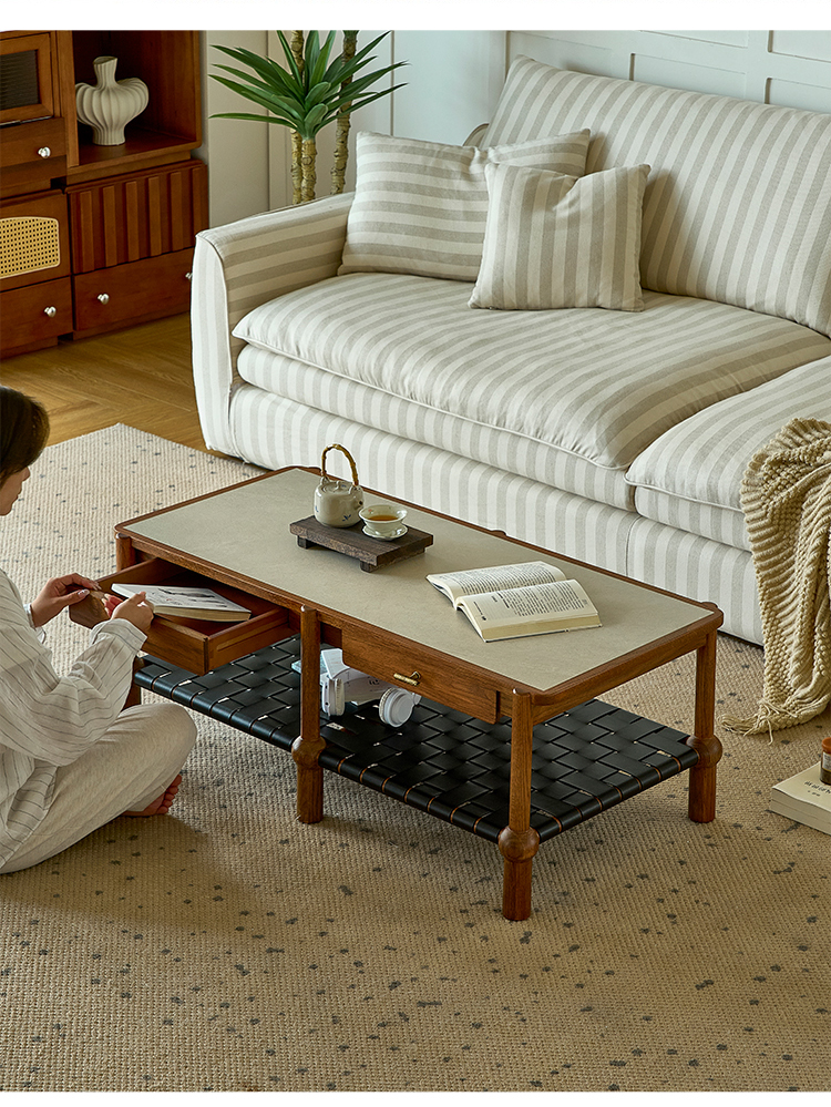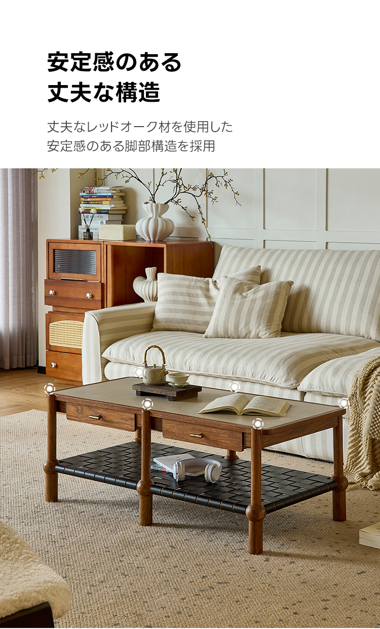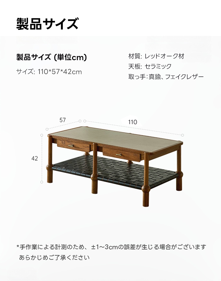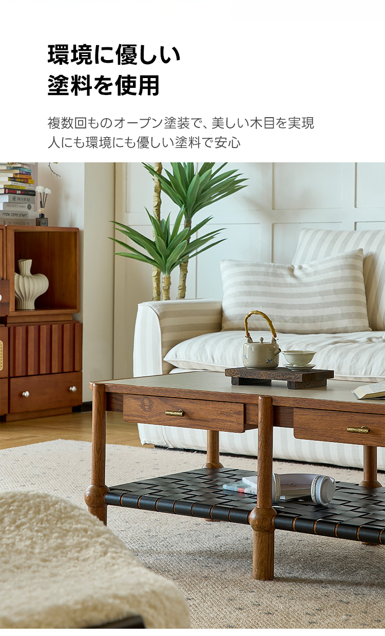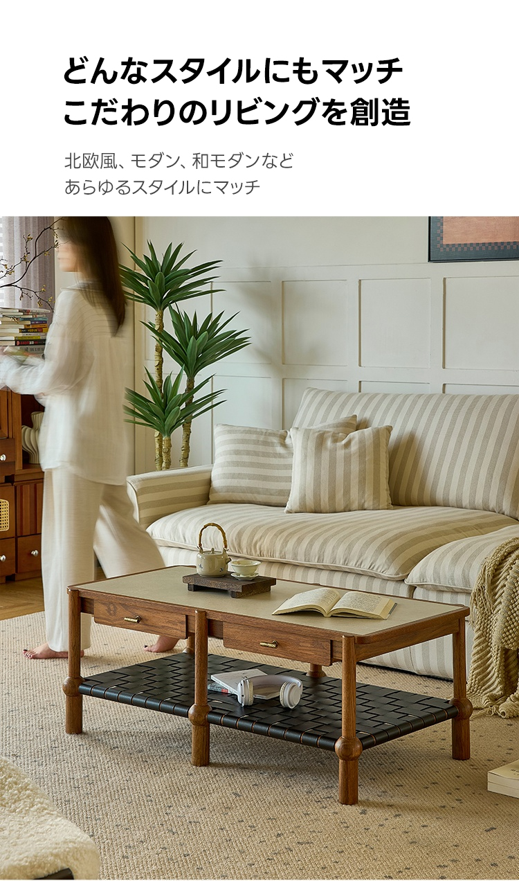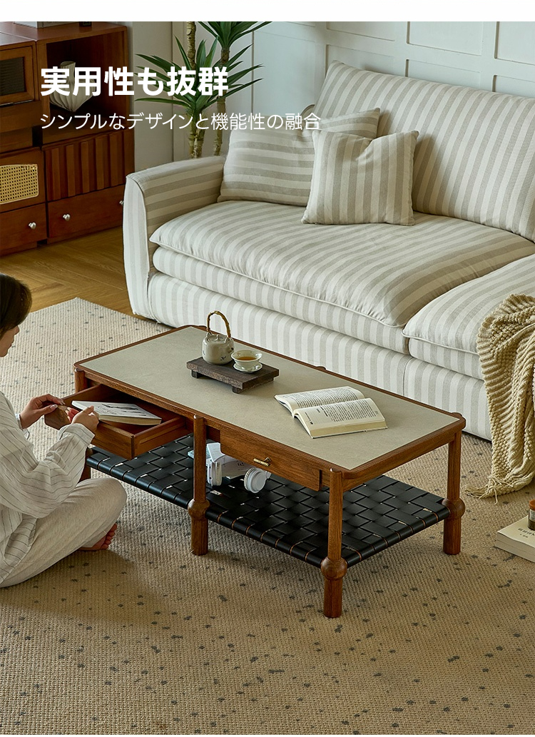 - 【多機能リビングテーブル】:くつろぎティーテーブルは、耐熱性と耐傷性に優れたセラミック天板を採用し、日常の使用にも安心です。2つの引き出し付きで、小物類をすっきりと収納でき、リビングスペースを有効活用できます。